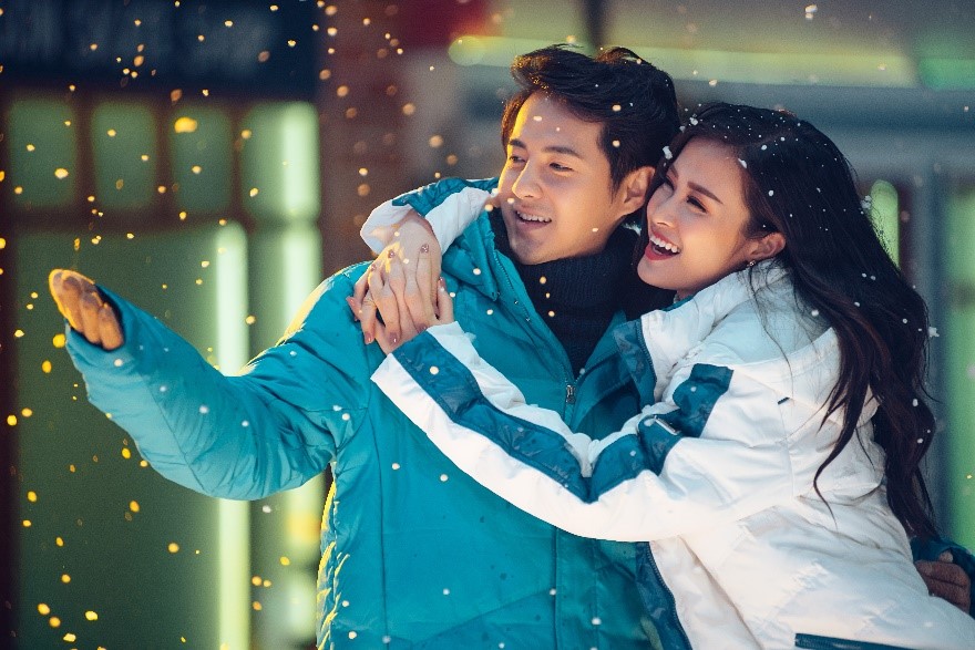 Bộ ảnh mới nhất không phải là ngoại lệ. Cặp đôi “tình bể bình” trên nền tuyết trắng đẹp như mơ, những “cơn mưa bokeh” lấp lánh và những gam màu chuẩn giáng sinh chỉ nhìn thôi đã thấy ấm hết cả lòng.