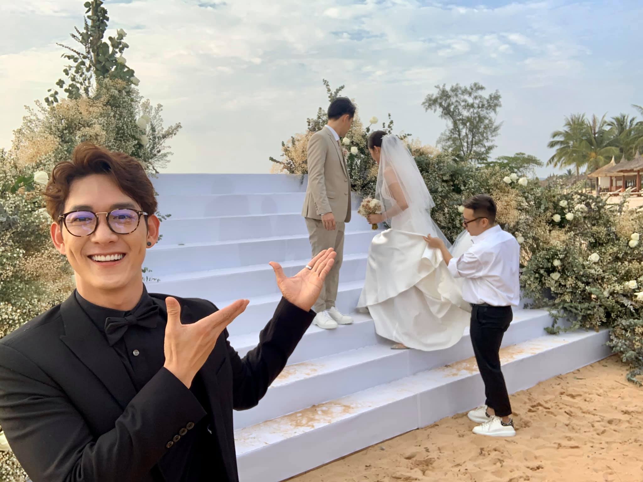 Trong khung cảnh lễ đường ngập tràn sắc trắng được thiết kế sát cạnh bờ biển, 2 nhân vật chính của buổi tiệc muốn mang đến một không gian thật lãng mạn cho bạn bè và người thân. 500 khách mời trong đó 200 khách là người của showbiz: Việt Hương, Lệ Quyên, Trấn Thành, Hari Won, Nhã Phương, Noo Phước Thịnh, Ngô Kiến Huy, Khổng Tú Quỳnh, Khả Ngân, Thu Trang, Tiến Luật, Ưng Hoàng Phúc,…