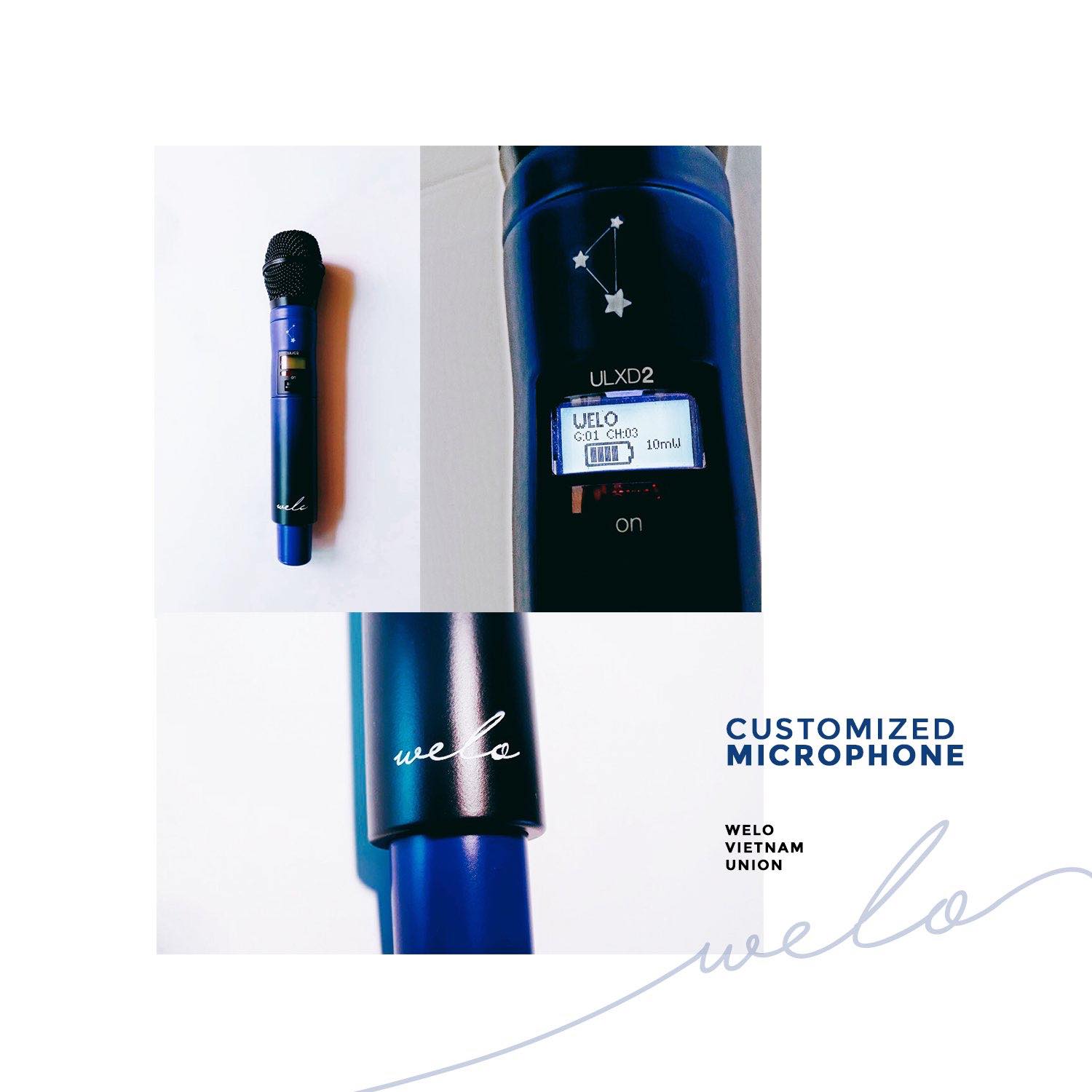Ngoài những màn trình diễn, giao lưu của Ong Seong Wu, fan Việt còn đặc biệt chú ý đến chi tiết chiếc micro màu xanh có khắc chữ WELO (tên fandom) và biểu tượng 3 ngôi sao đặc trưng như 3 nốt ruồi ở má trái của nam ca sĩ.