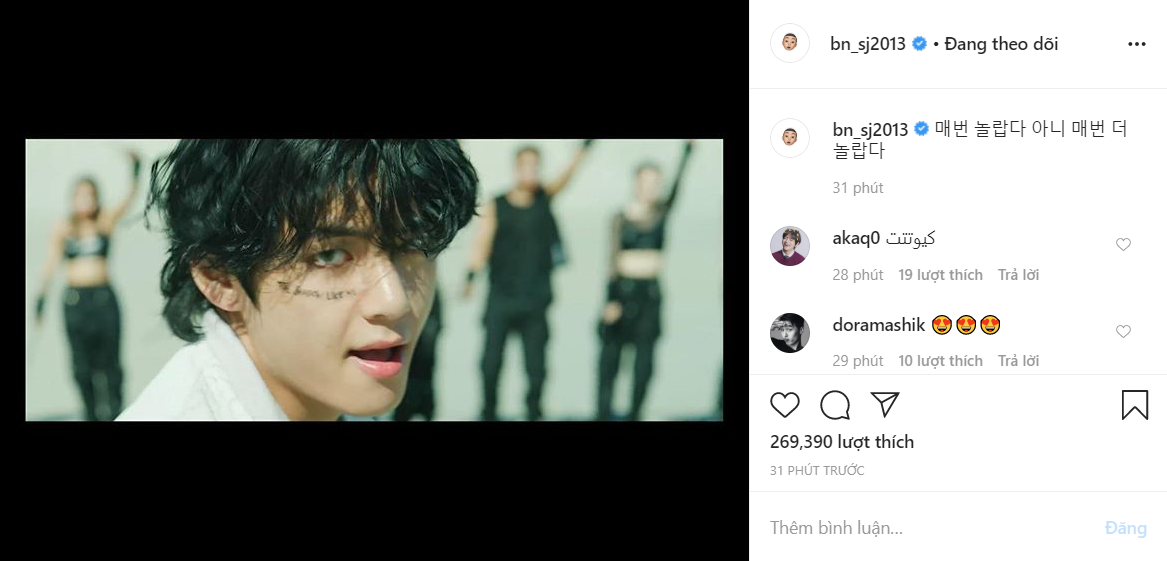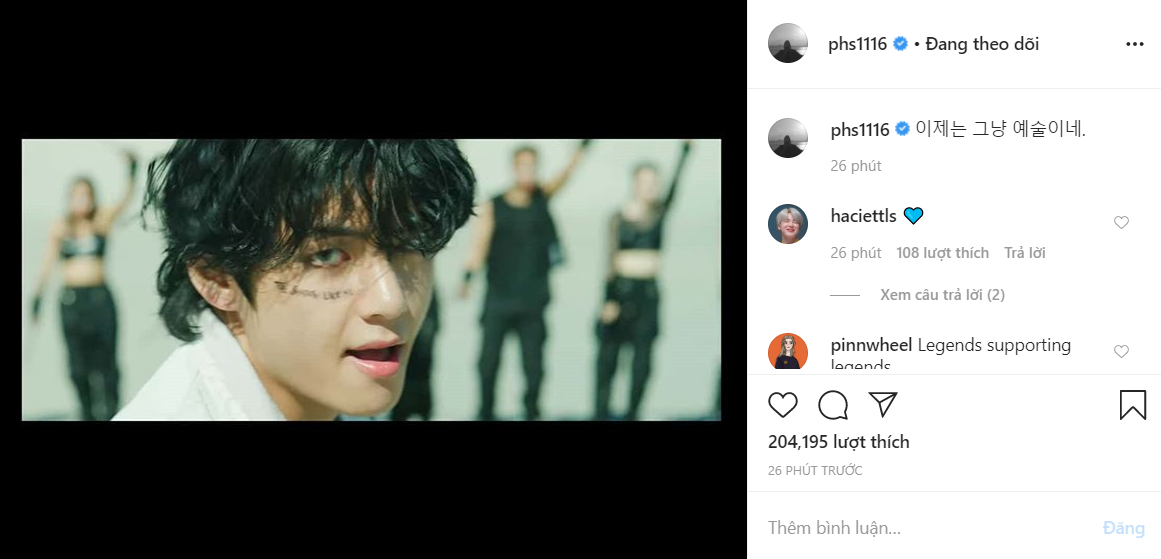 Sau khi bài hát được phát hành, một số bạn bè đồng nghiệp nổi tiếng của V (Kim Tae Hyung) đã thể hiện cổ vũ cho người em thân thiết của mình. Trong đó, diễn viên Park Seo Joon, Park Hyung Sik (ZE:A) và Choi Woo Sik đã chia sẻ một số hình ảnh trên mạng xã hội Instagram với lời nhắn nhủ đáng yêu. Ngôi sao Thư ký kim sao thế? bày tỏ: “Mỗi lần đều ngạc nhiên. À không, ngạc nhiên hơn”. Thành viên ZE:A nói: “Chỉ là anh thấy như một nghệ thuật”. Diễn viên Ký sinh trùng nói: “Quyến rũ….quá sức để chịu đựng”.