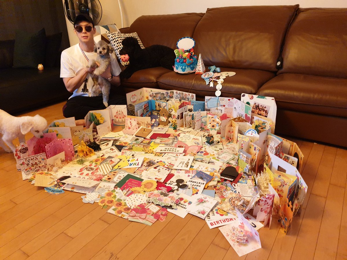 Trong những bức ảnh công khai, Park Yoochun thích thú ôm một chú cún cưng, tuy gương mặt anh được che bởi mũ và kính râm nhưng cũng cảm nhận được tâm trạng hạnh phúc của anh. Đặc biệt, những món quà và thư tay nhận từ người hâm mộ được chất đống và nhanh chóng thu hút mọi sự sự chú ý.