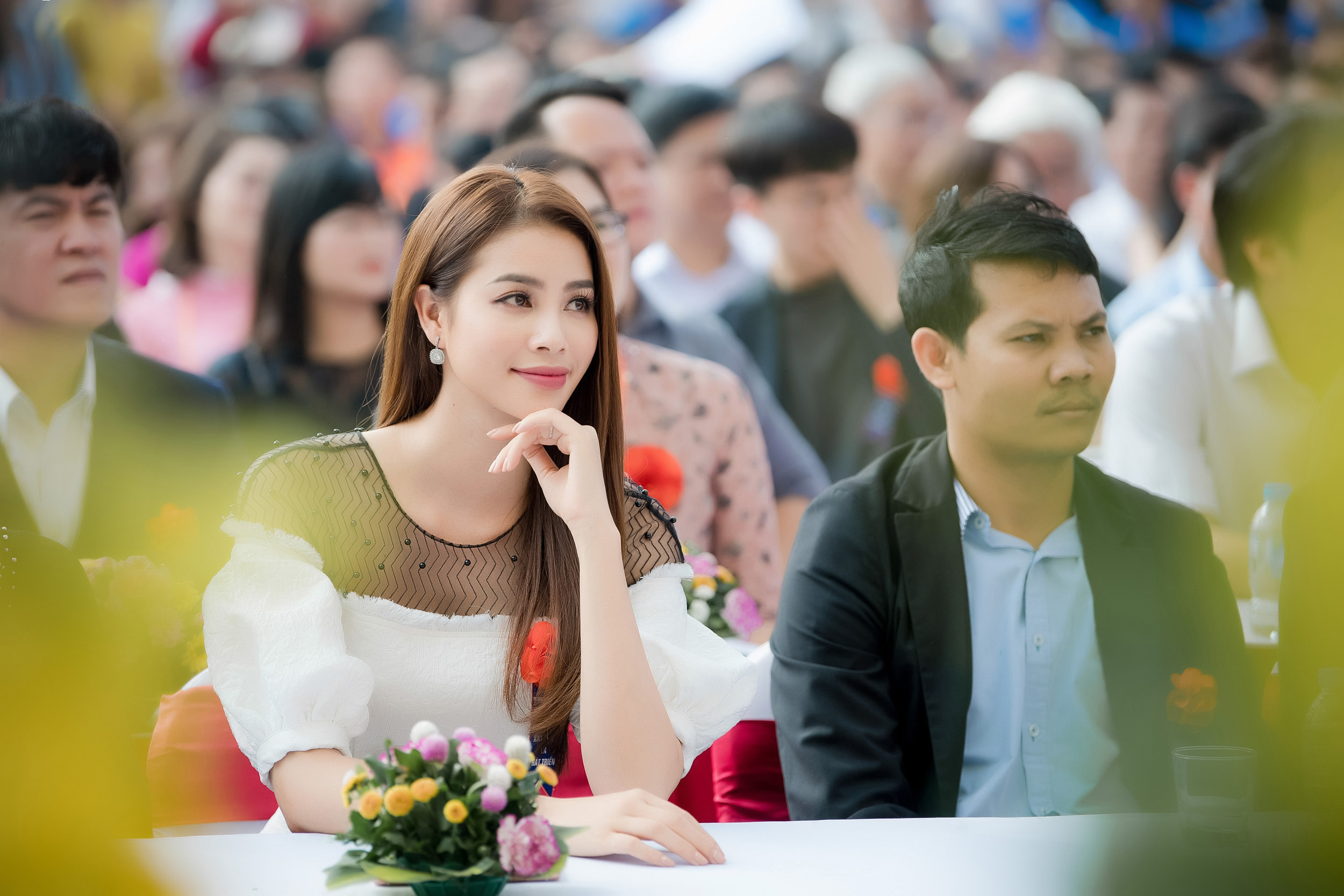 Sáng 14/11, Phạm Hương tiếp tục chuỗi hoạt động của mình tại một trường Đại học. Tại đây, cô đại diện Hiệp hội trao 300 triệu đồng học bổng tiếng Nhật dành cho học sinh và giảng viên của trường.