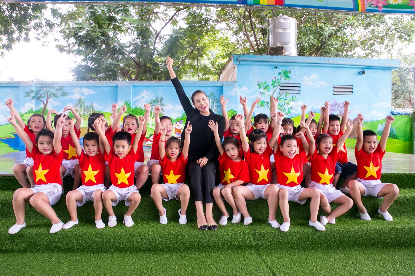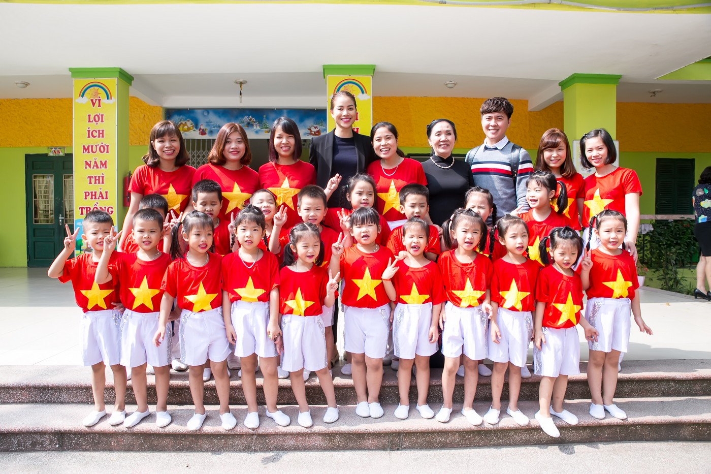 Song song đó, Phạm Hương cũng đã đến thăm một trường mầm non trên địa bàn. Cô được các giáo viên và học sinh vui vẻ tiếp đón.