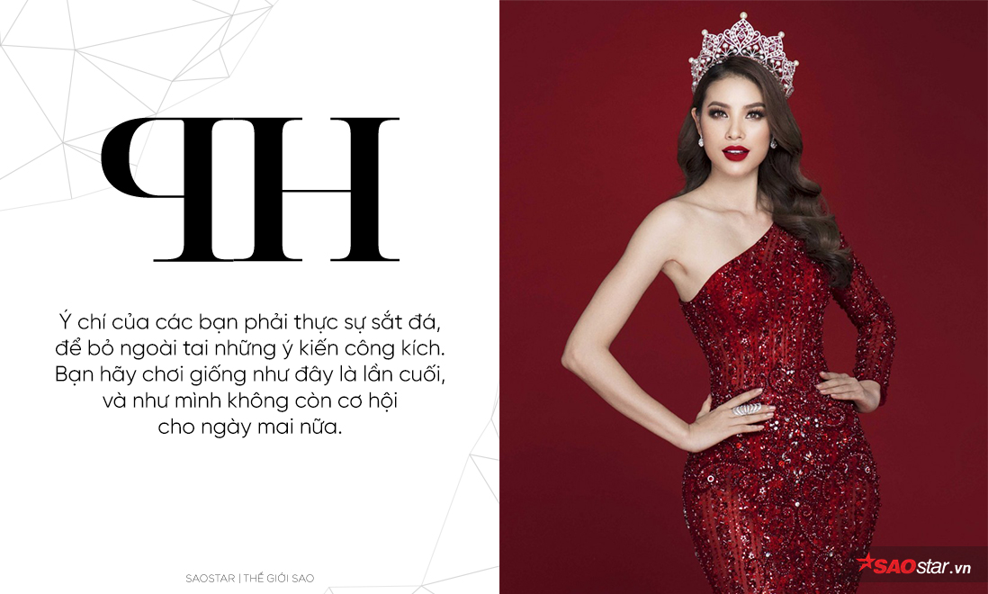Hơn ai hết, bằng sự nỗ lực của mình, Phạm Hương muốn chứng minh mình chưa bao giờ muốn từ bỏ, còn việc có trở thành hoa hậu hay không, một phần là định mệnh và số phận đã gắn bó bạn với nó, chắc chắn bạn sẽ không bao giờ thay đổi được điều đó.
