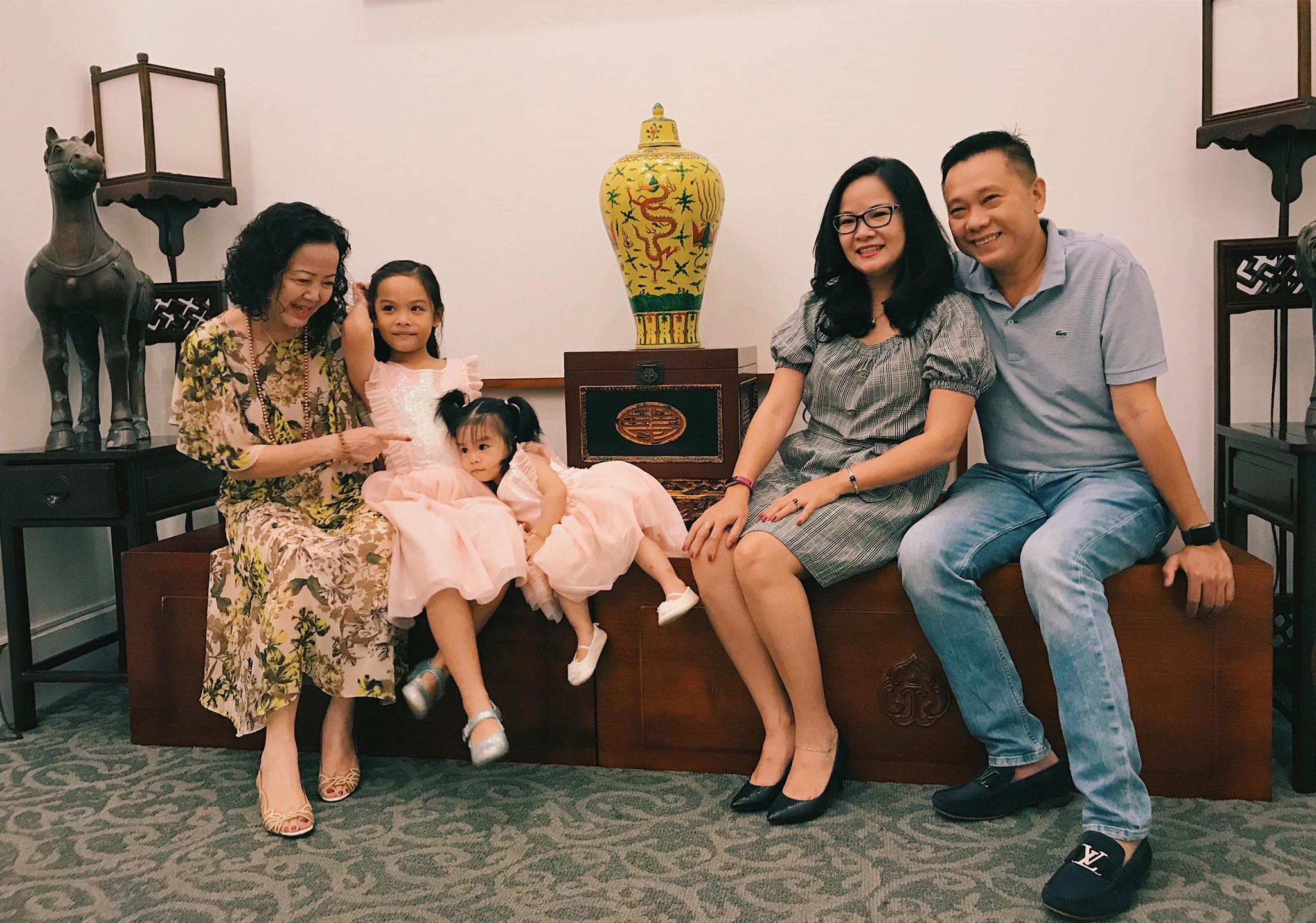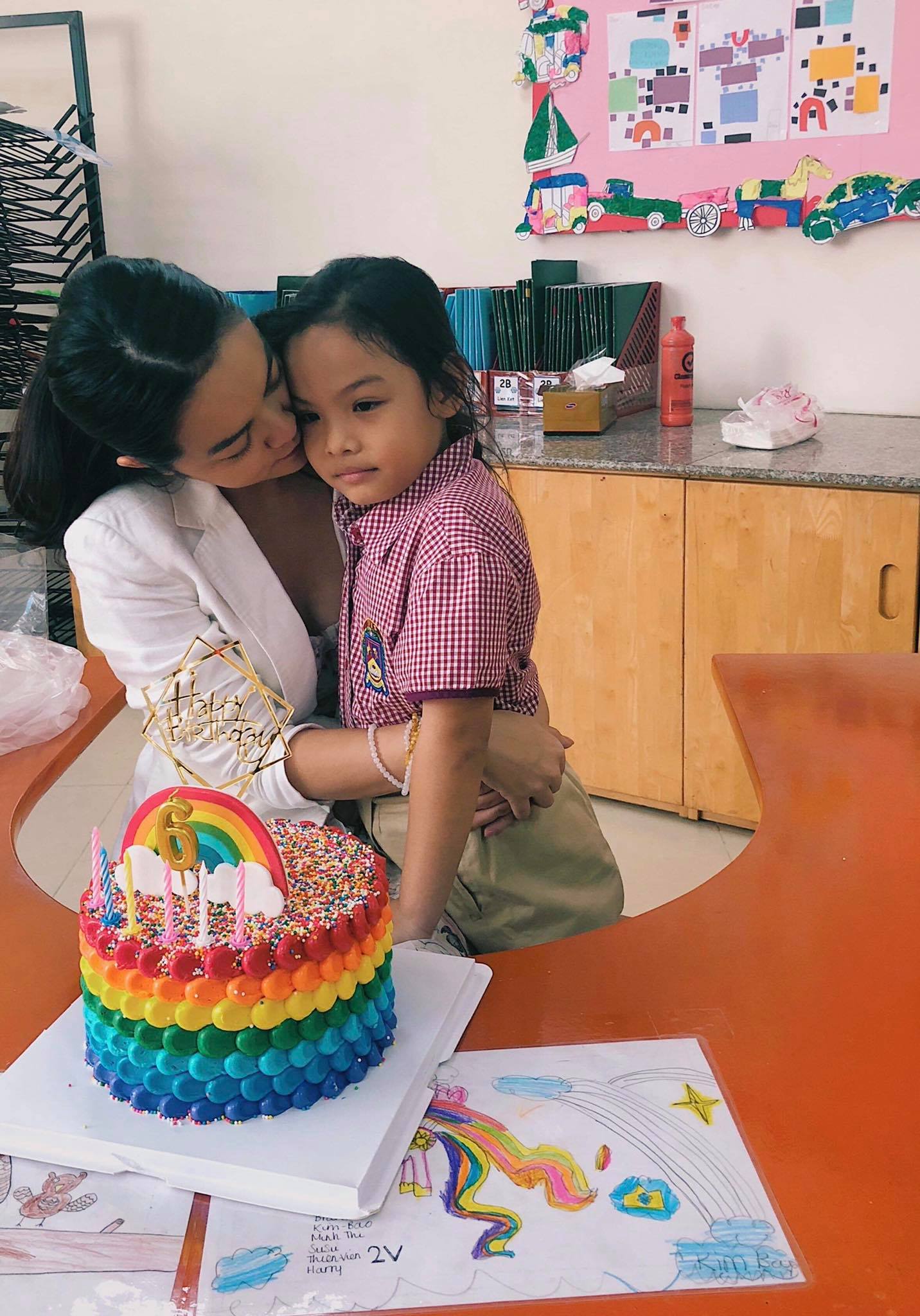 Tròn 6 tuổi, trong vòng tay yêu thương của tất cả mọi người trong gia đình. Chúc người bạn nhỏ của tôi luôn xinh đẹp, học giỏi, mạnh khoẻ. Dù cho có sự thay đổi nào, chắc chắn tình yêu dành cho chị 2 của gia đình sẽ không hề giảm sút thậm chí sẽ được yêu thương nhiều hơn”.