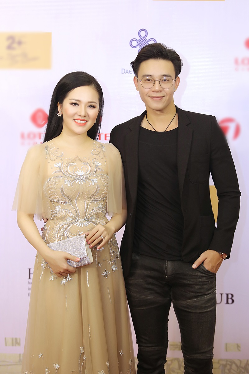 Với bộ đầm đơn giản nhưng được thiết kế khá tinh tế, Phạm Thùy Dung đẹp lộng lẫy, sang trọng và vô cùng trẻ trung. Cô rất tự tin sánh bước trên thảm đỏ cùng ca sỹ Đông Hùng, không thua kém các celeb khác xuất hiện trong sự kiện.