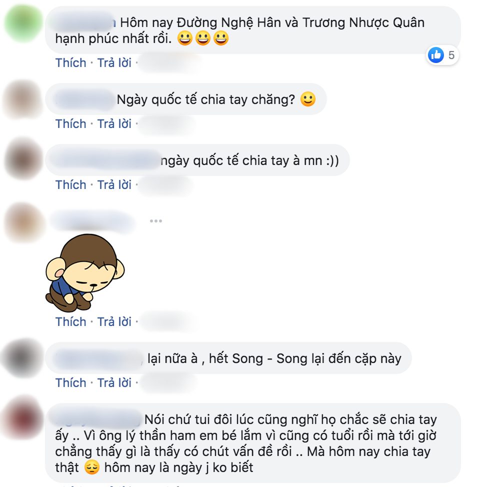 Mới đây, thông tin Lý Thần - Phạm Băng Băng chia tay không khỏi khiến cả làng giải trí châu Á “rúng động”, đặc biệt là người hâm mộ của cặp đôi. Đáng chú ý, sáng hôm nay, Song Hye Kyo và Song Joong Ki cũng đã quyết định “đường ai nấy đi”. Chưa hết bàng hoàng về cặp đôi Hậu duệ Mặt Trời thì khán giả lại tiếp tục đón tin dữ nên khỏi phải nói sự chán nản bao trùm đến thế nào. Không ít cư dân mạng thảng thốt tự hỏi: “Hôm nay liệu có phải Quốc tế chia tay?” khi những “tượng đài ngôn tình” bỗng chốc sụp đổ trong chớp mắt.
