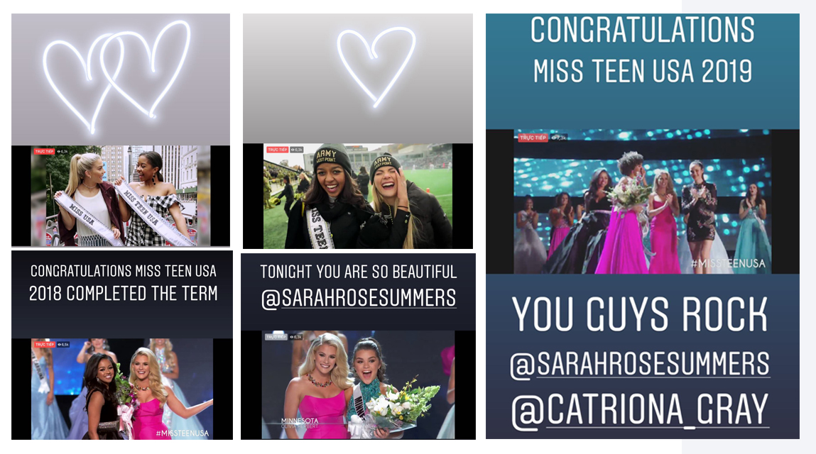 Bên cạnh sự ngưỡng mộ trước sắc đẹp của Tân Miss Teen USA, H'Hen Niê cũng không quên nhớ về cô bạn thân Miss USA 2018 Sarah Rose. Một cảm nhận đặc biệt H'Hen Niê nhận thấy ở người đẹp đăng quang là cô ấy “đậm chất rock”. Nhận xét này có lẽ bởi bộ tóc xù đặc trưng của tân Miss Teen.