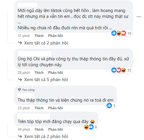 Ngay sau đó nữ ca sĩ đã lên tiếng đính chính tin đồn, và nhận về sự đồng tình từ phía khán giả: "Ủng hộ Chi và phía công ty thu thập thông tin đầy đủ, xử lý tới cùng chuyện này", "Thương con gái , cuối năm còn gặp chuyện từ trên trời rơi xuống", "Chắc chắn không phải là em rồi"......