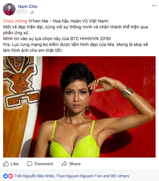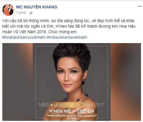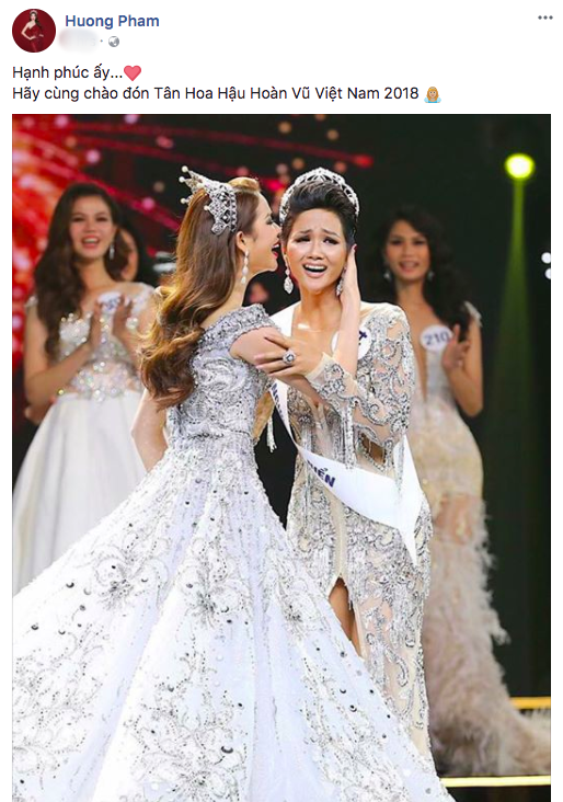Phạm Hương chia sẻ bài viết chào đón tân Hoa hậu Hoàn vũ Việt Nam 2017.