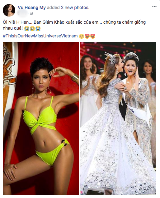 Không xuất hiện trong dàn giám khảo cuộc thi nhưng Á hậu Hoàng My vẫn cập nhật diễn biến và tiết lộ H'Hen Niê cũng là sự lựa chọn của cô cho vương miện Hoa hậu.
