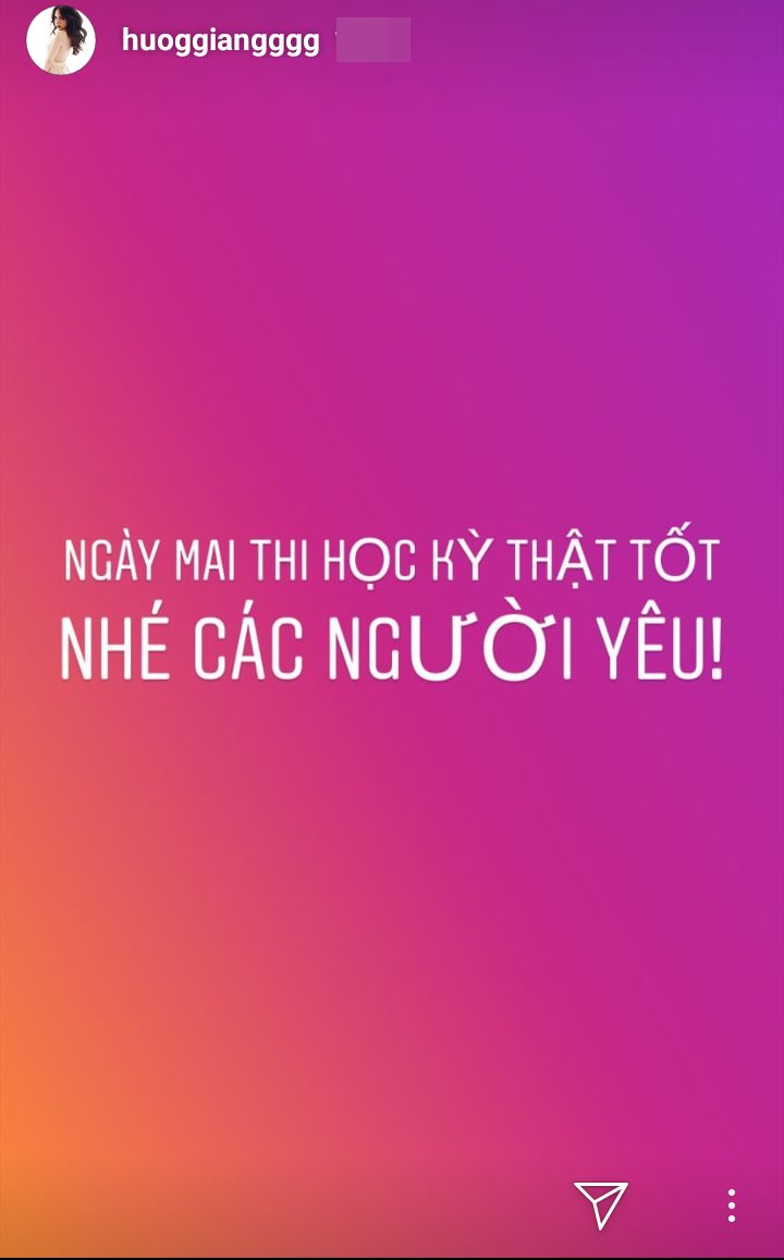 “Thả thính” không thành vì cộng đồng fan còn mải mê ôn thi, những tưởng Hương Giang sẽ làm lơ nhưng cô nàng lại bất ngờ có động thái hồi đáp trên Instagram cá nhân. Huấn luyện viên của Siêu mẫu Việt Nam 2018 dành lời động viên và chúc những khán giả hâm mộ ở tuổi học sinh - sinh viên sẽ hoàn thành tốt việc học tập: “Ngày mai thi học kỳ thật tốt nhé các người yêu“. Nhìn thấy hình ảnh này, chắc chắn cộng đồng fan Hương Giang sẽ thi tốt để còn sớm… tập trung “cày view” cho MV sắp xuất xưởng của “chị đẹp”.