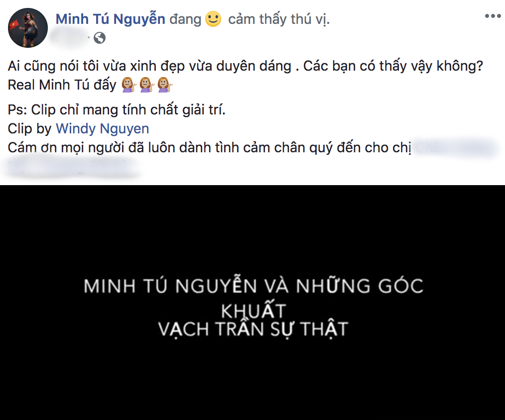 Chưa dừng lại ở đó, mởi đây Á quân Asia’s Next Top Model 2017 không ngại ngần cho “lên sóng” món quà từ một người bạn: Đoạn clip với tựa đề Minh Tú Nguyễn và những góc khuất vạch trần sự thật. Xuất hiện không phải với tư cách một đại diện Việt Nam đạo mạo nữa mà chỉ đơn thuần là người chị Minh Tú đáng yêu, “lầy lội” trong mắt bạn bè cùng người hâm mộ.