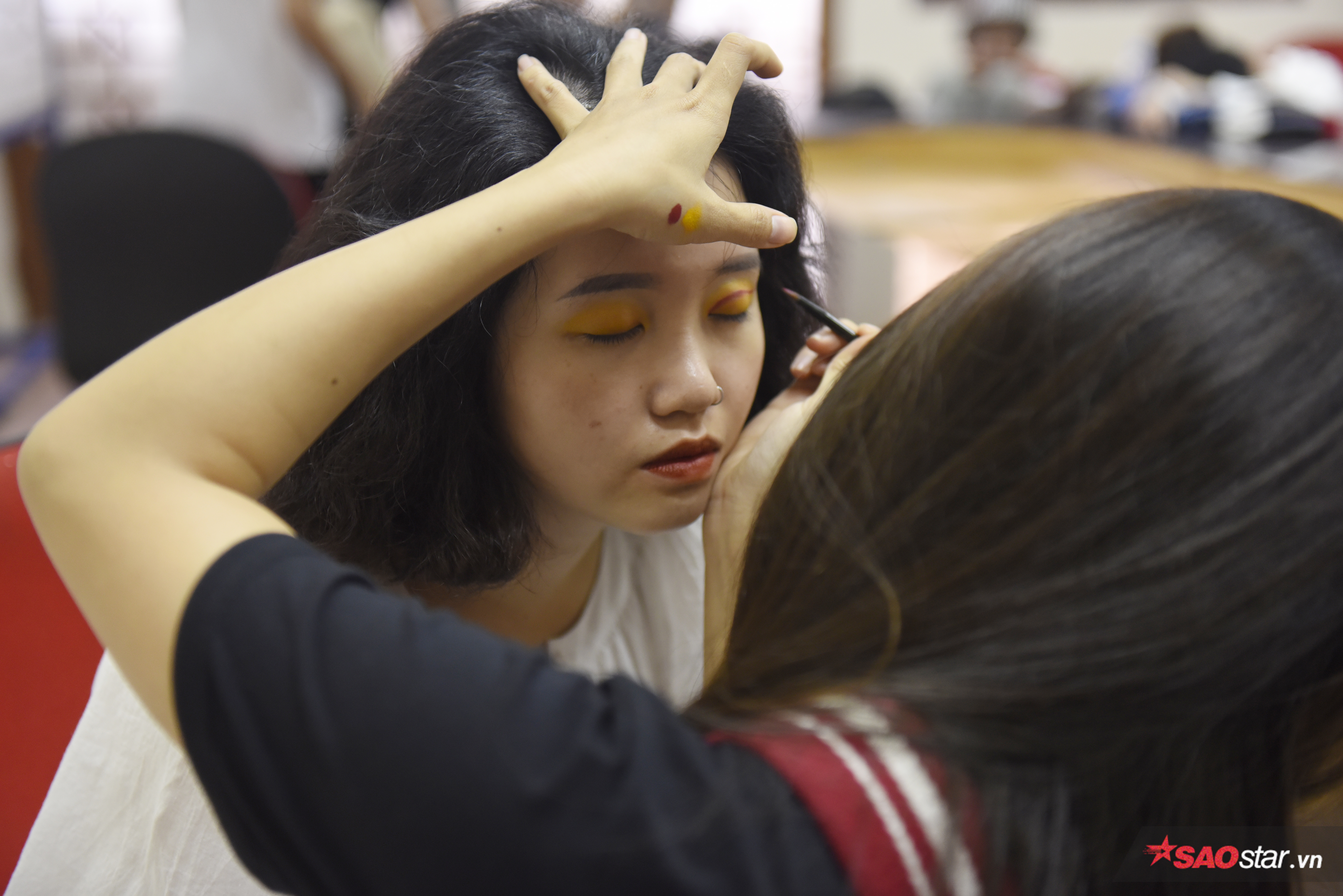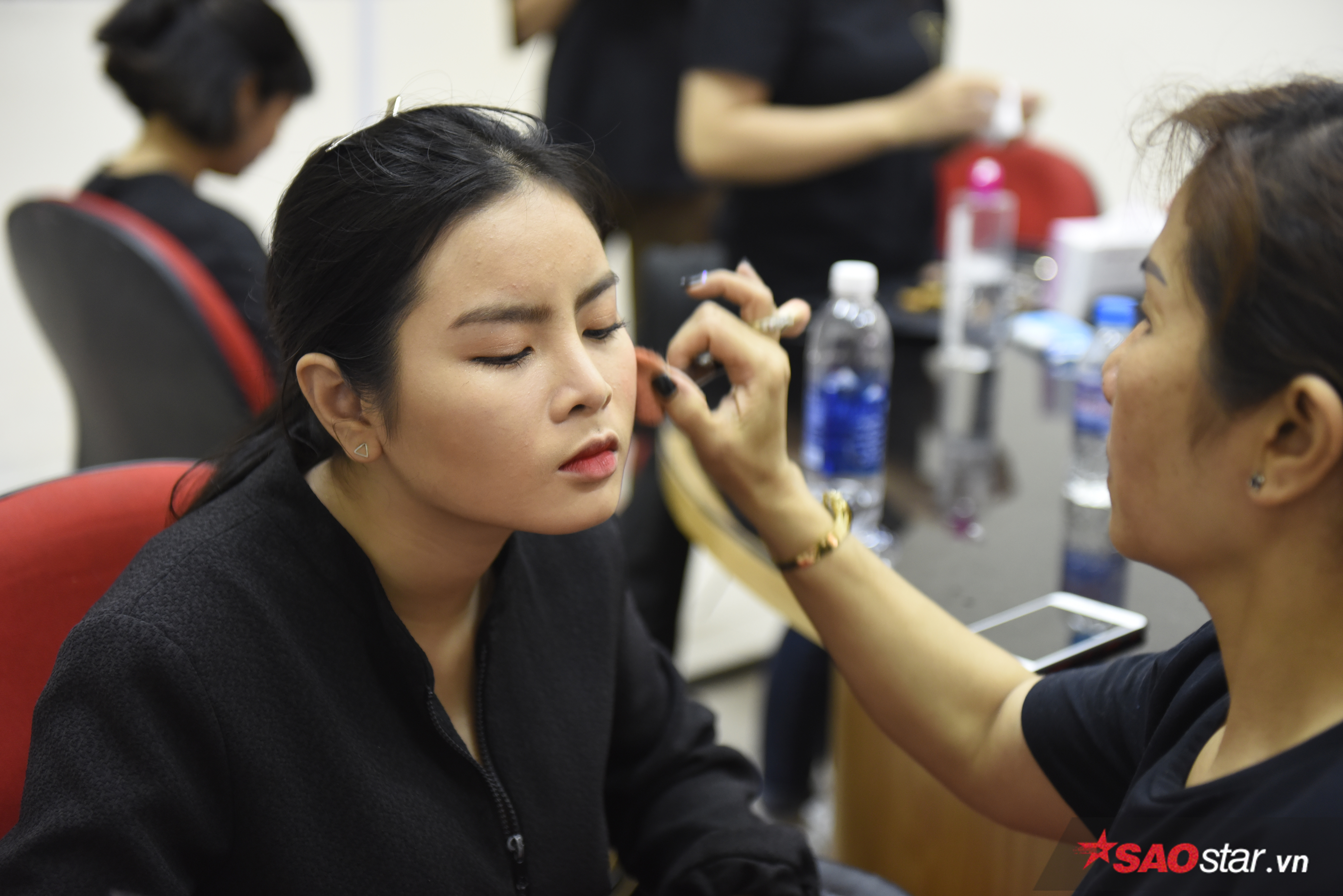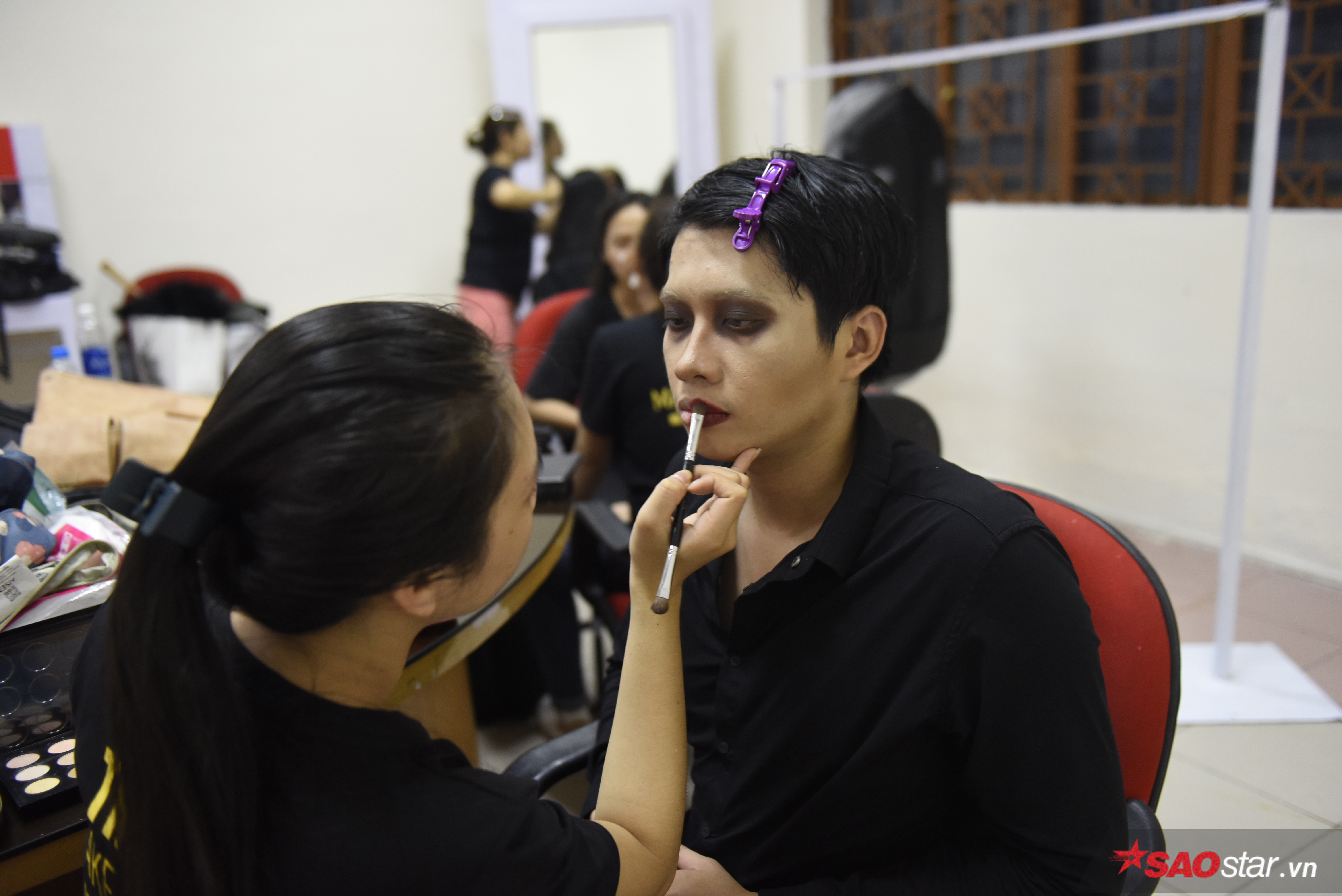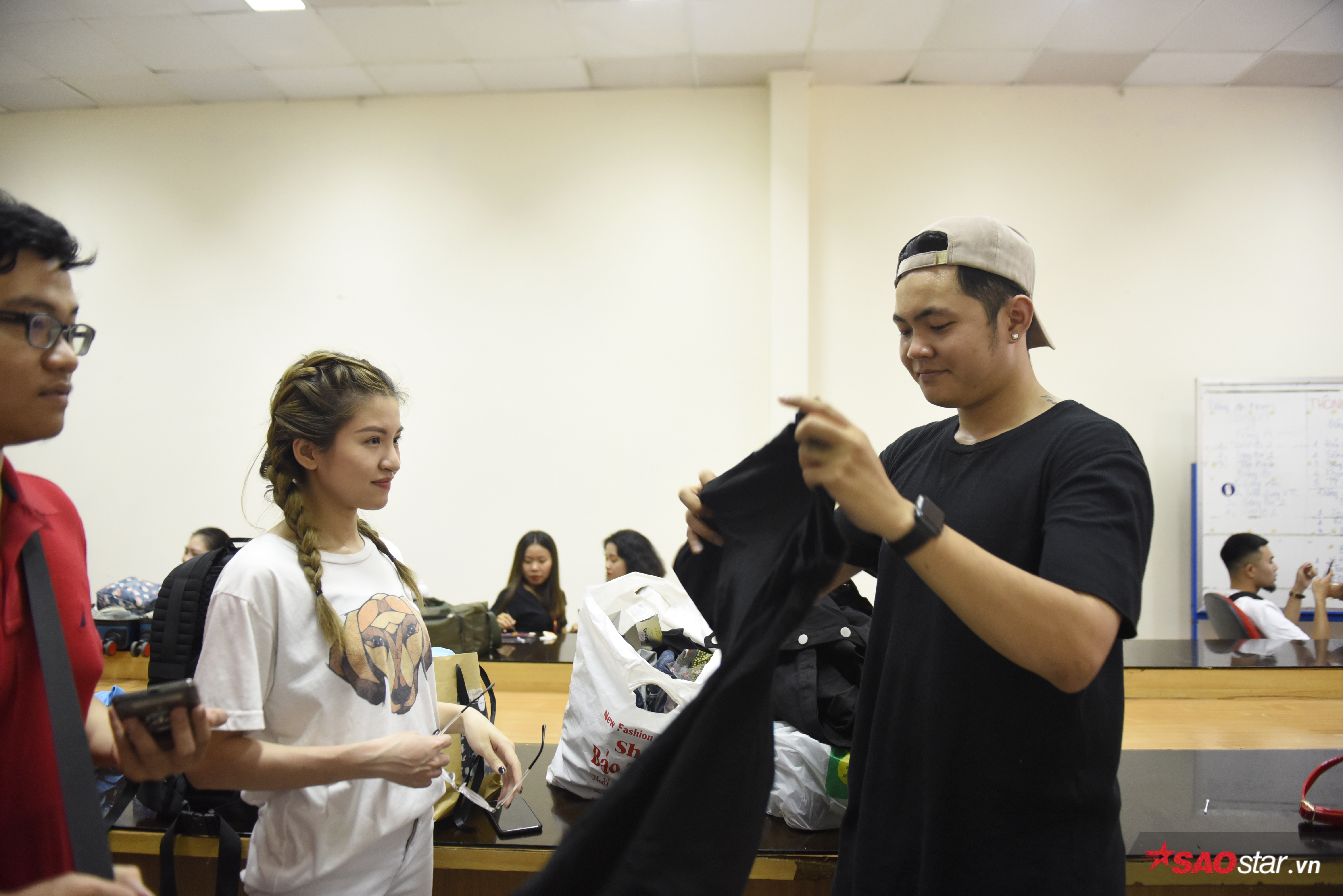 … chu đáo giúp đỡ nhau thử trang phục diễn trong hậu trường.