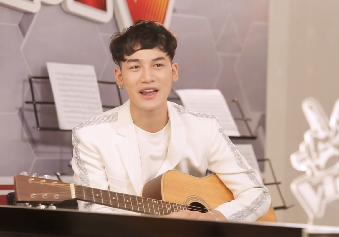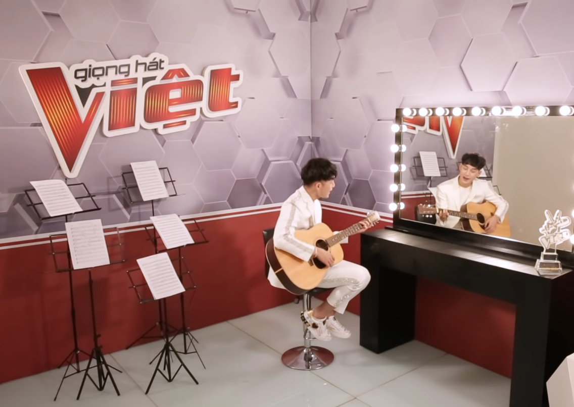 Trong không gian của phòng nhật ký, ngoài việc cổ vũ, động viên tinh thần cho 61 thí sinh sắp phải đối mặt với 4 chiếc ghế nóng, quán quân The Voice 2017 còn tranh thủ gửi đến khán giả ca khúc Sài Gòn, Cà phê sữa đá cùng khả năng chơi guitar khá cừ.