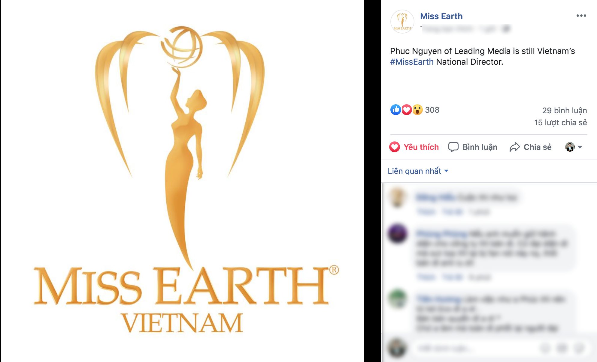 Thế nhưng, chưa đầy 24 giờ, trang thông tin đại diện chính thức của Miss Earth xác nhận việc Phúc Nguyễn vẫn giữ vai trò là giám đốc quốc gia của cuộc thi này. Nguyên văn và hình ảnh dẫn chứng như sau: “Phuc Nguyen of Leading Media is still Vietnam’s Miss Earth National Director”.