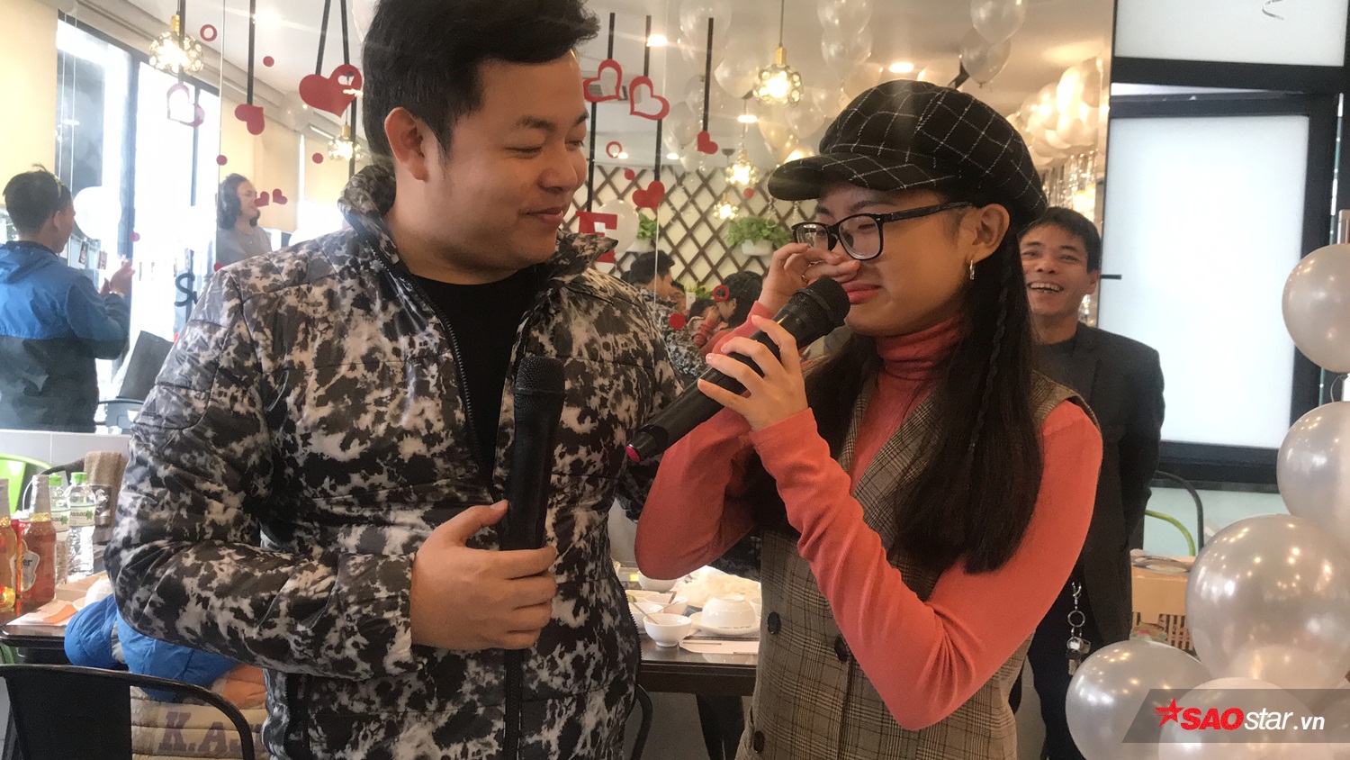 Cô khóc nấc trong vòng tay Quang Lê khi cảm nhận được những hỗ trợ đặc biệt mà ba nuôi dành cho mình.
