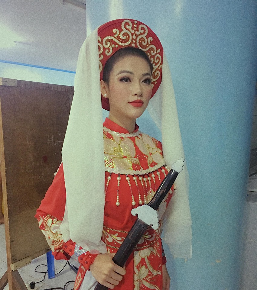 Mới đây, Phương Khánh lại khiến người hâm mộ nước nhà bất ngờ khi thể hiện trích đoạn cải lương kinh điển Tiếng trống Mê Linh trong phần thi Tài năng - Talent Competition.