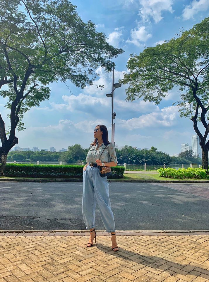 Diện bộ quần áo với phong cách thoải mái, thế nhưng nhiều người càng phải trầm trồ rằng, chỉ sau 1 tuần hạ sinh nhóc tì, siêu mẫu đã trở về form dáng bình thường như hồi còn son rỗi. Nhiều lời khen của bạn bè đã dành cho Phương Mai khi chỉ sau 1 tuần sinh mổ, cô đã trở lại hoạt động bình thường.