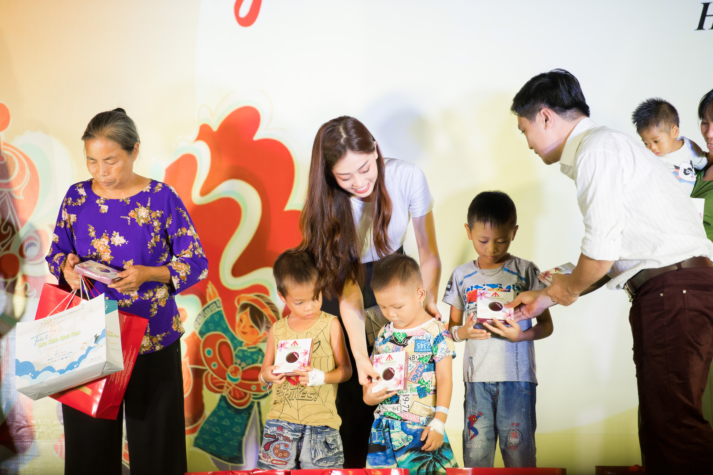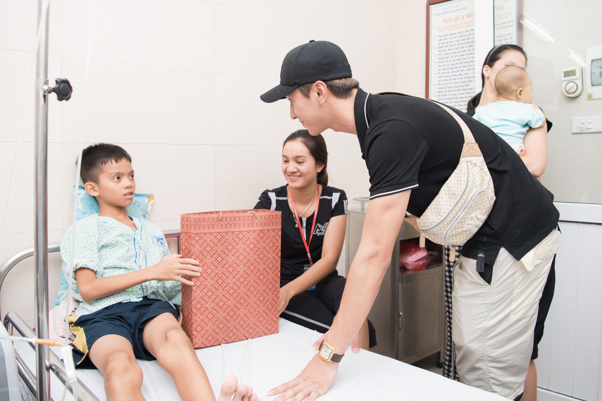 Mang đến những món quà Trung thu ấm áp, Bình An và Phương Nga còn ân cần hỏi thăm tình hình sức khỏe, chia sẻ với gia đình các em nỗi lo lắng, khó khăn trong những ngày nằm viện. Cặp đôi được các fan yêu mến gọi là “cậu An” - “mợ Nga” tạo nên không khí vui vẻ, gần gũi để tiếp thêm sức mạnh và dành những lời động viên các em chóng khỏi bệnh để trở về nhà tập trung học tập thật tốt.