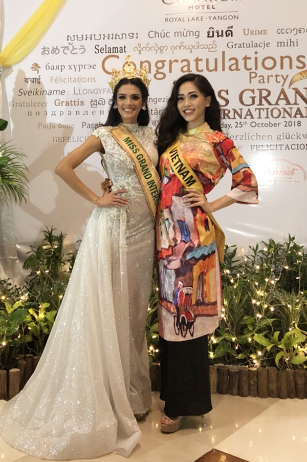 Cô đã tặng cho toàn bộ thí sinh một vật phẩm mang đậm tinh thần Việt Nam, đó là chiếc khăn rằn Nam Bộ. Đây cũng là hành động giúp cô ghi điểm và thể hiện tình cảm với các thí sinh tham gia Miss Grand International 2018.