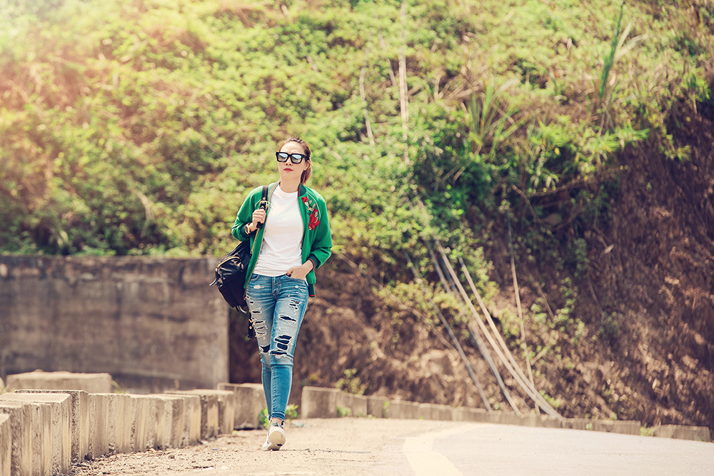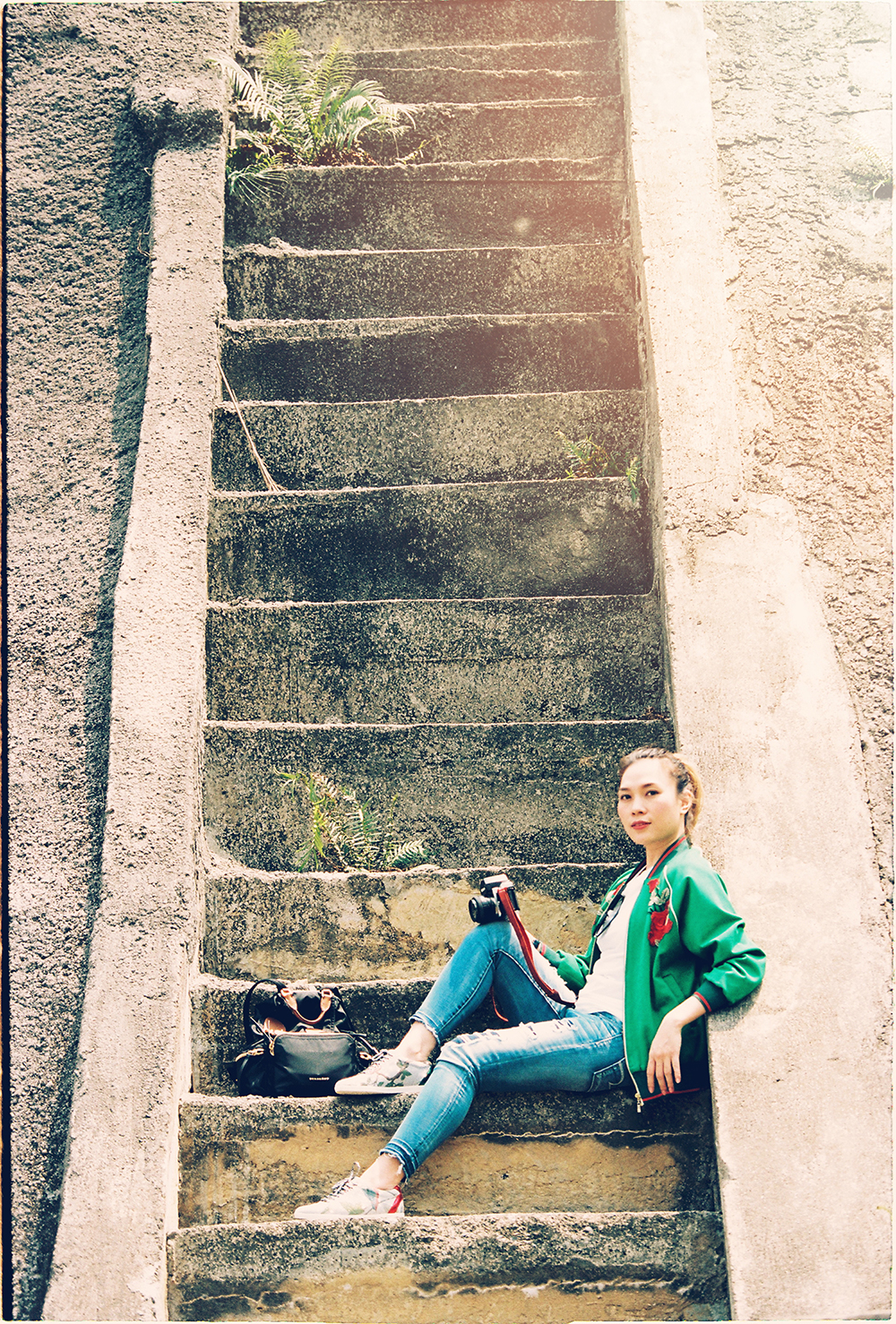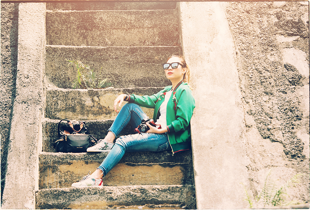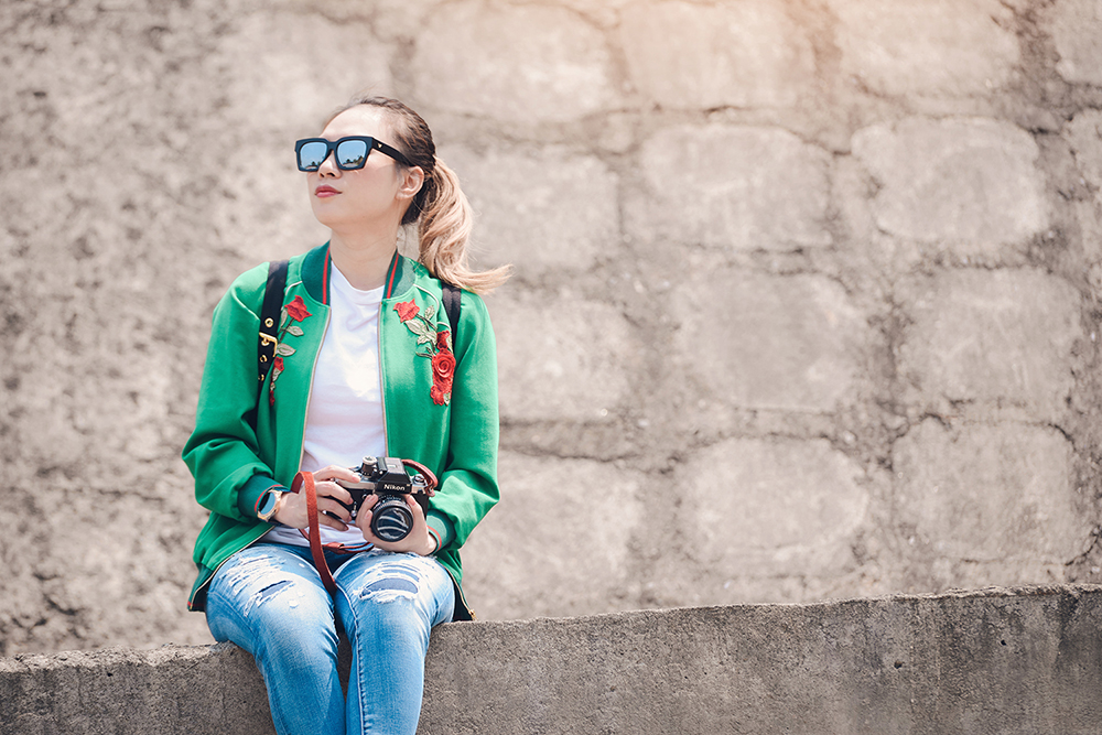 Diện áo thun quần jeans rách cá tính kết hợp với áo khoác bomber, nữ ca sĩ đến thăm những nơi nổi tiếng từng được giới trẻ yêu thích.