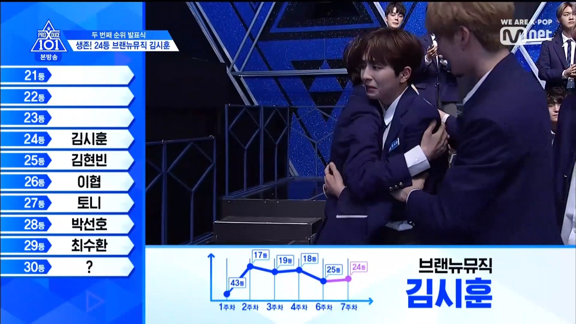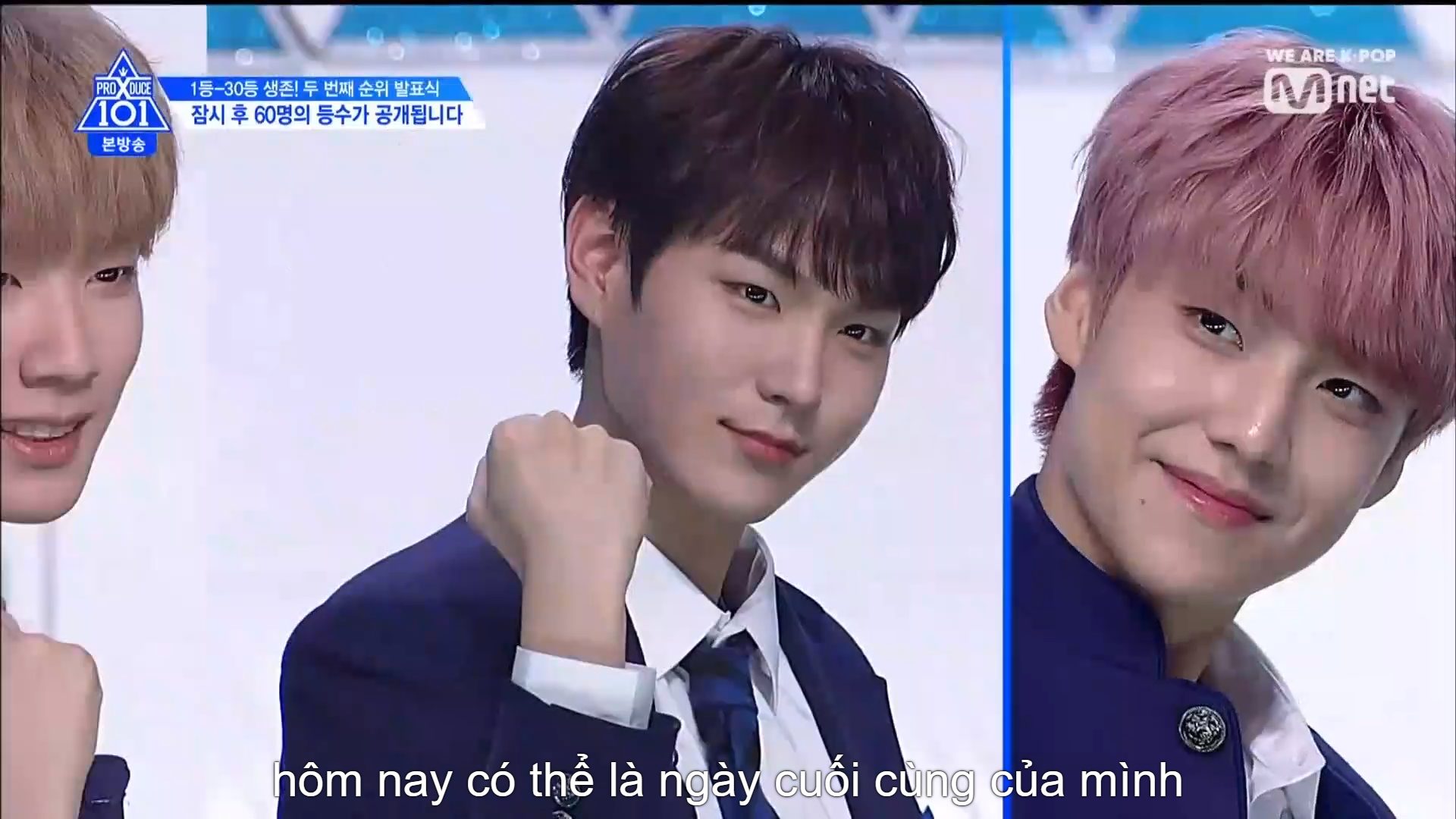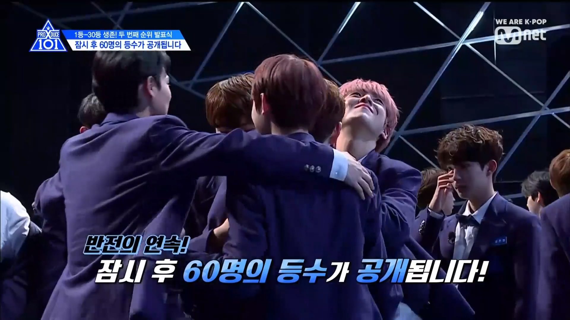 Cuối cùng hạng 1 chính thức thuộc về TTS Kim Wooseok. Đồng đội Lee JinHyuk tiếp nối hạng 2. Các TTS đều không ngừng cầu nguyện cho các bạn cùng công ty mình.