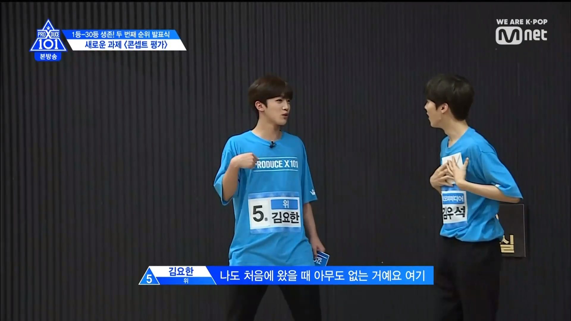 Sau đây sẽ là buổi ra mắt các ca khúc của vòng đánh giá concept thứ 3. Yohan chia sẻ cảm nghĩ khi bị tuột xuống hạng 5. Anh chàng nói sẽ chấp nhận thử thách. Wooseok cũng chia sẻ suy nghĩ liệu anh chàng có duy trì hạng 1 đến buổi loại trừ thứ 2 lần này.
