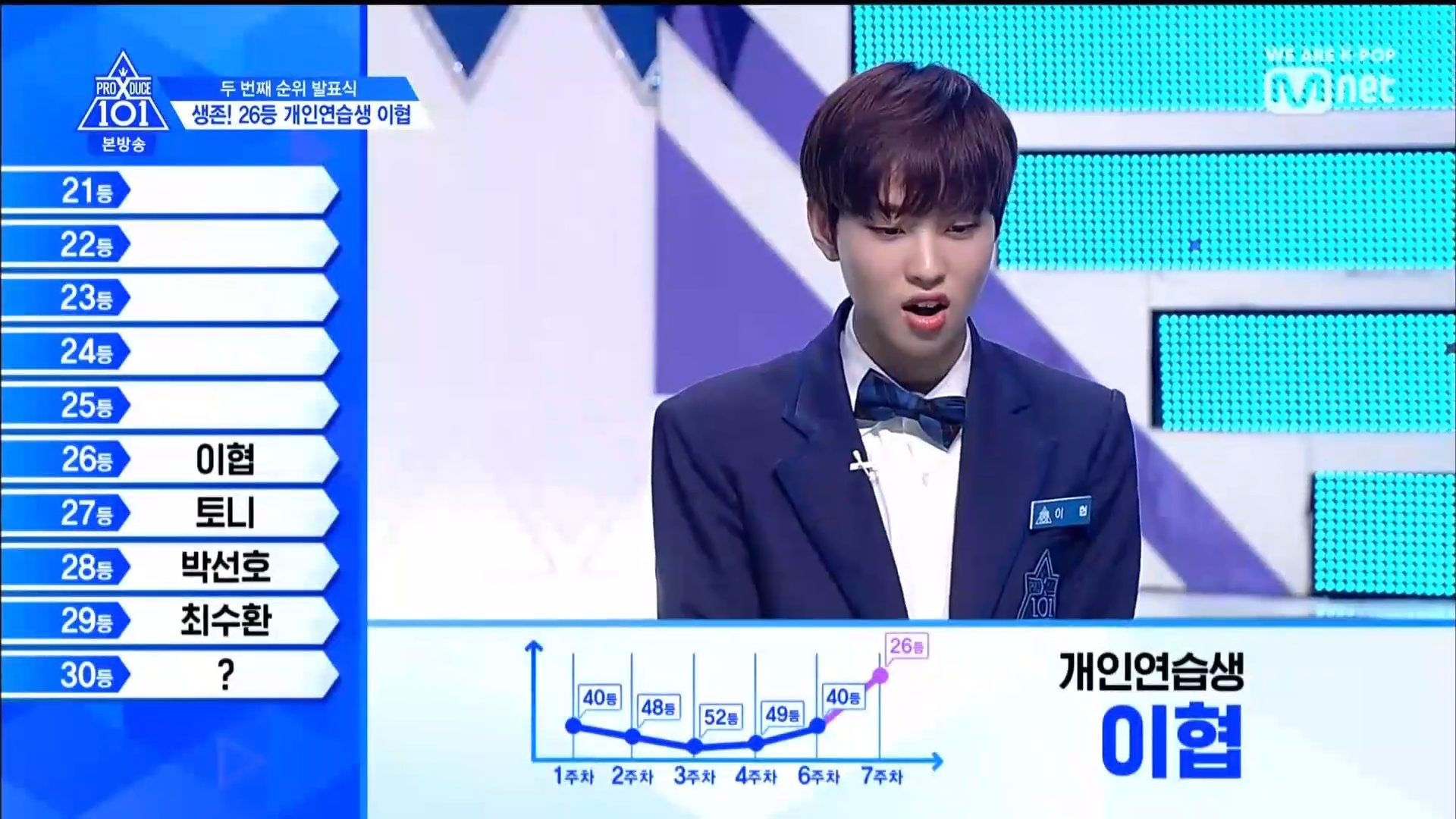 Theo đó, hạng 26 khiến nhà đại diện không khỏi bất ngờ về sự đột biến thứ hạng. Với 418k phiếu Lee Hyeop đã có cú lội ngược dòng nhờ giọng ca trời phú của mình. Anh chàng tăng 23 hạng.