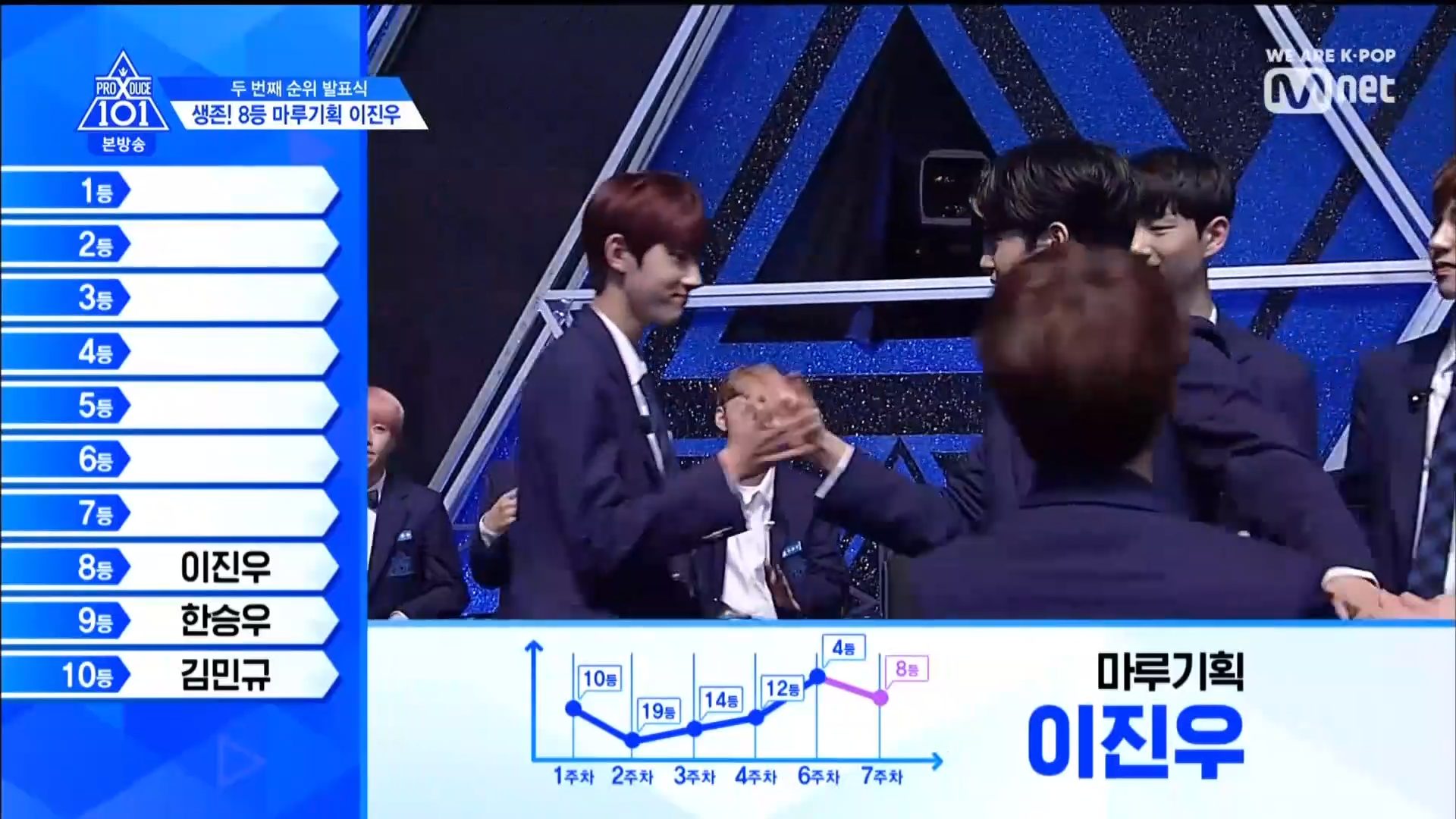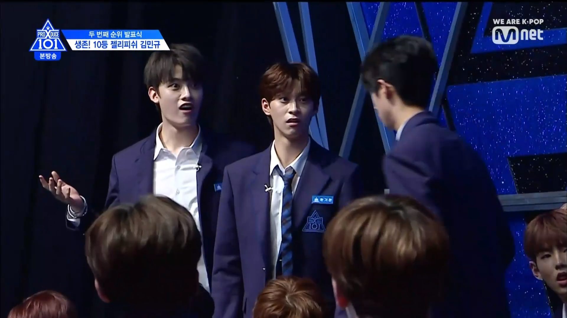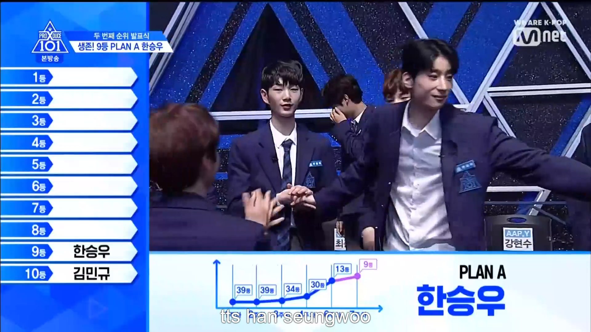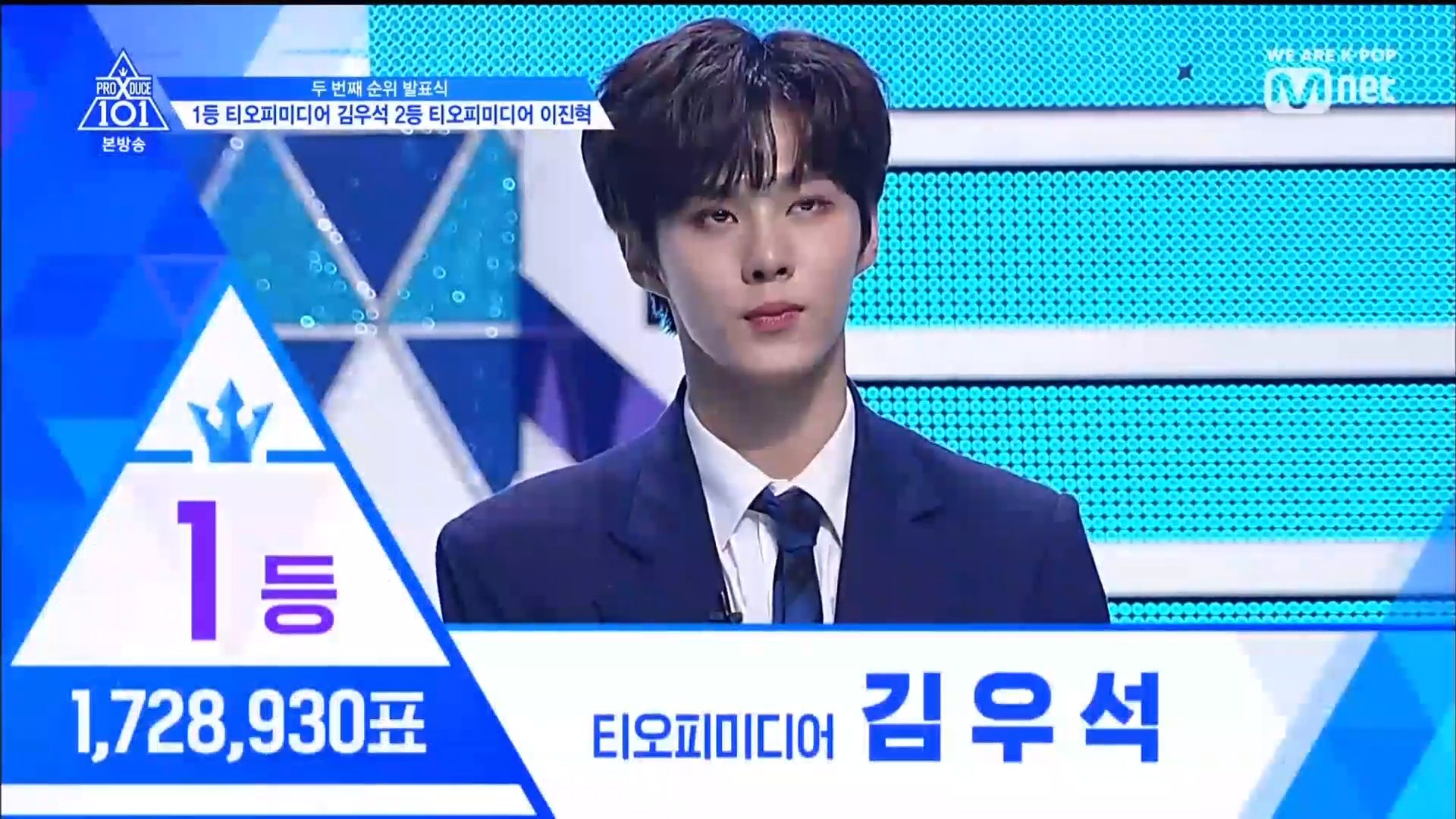 Điều đó đồng nghĩa 2 chàng trai Up10tion Lee JinHyuk và Kim WooSeok sẽ là 2 ông hoàng tranh vị trí No.1 Cả 2 cùng nắm tay nhau bước lên bục công bố. Cả 2 đều không tin được vào khoảnh khắc hiện tại.
