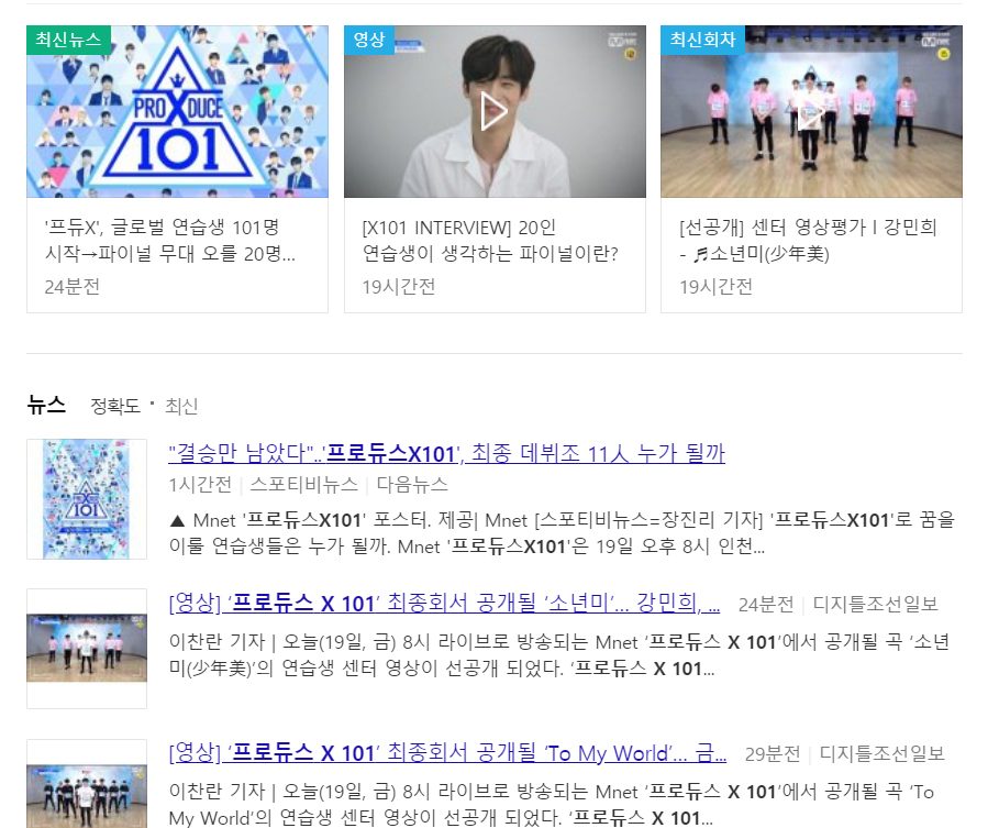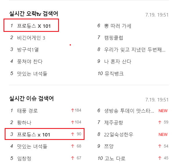 Chỉ 10 phút trước khi chương trình Produce X 101 đài Mnet được phát sóng trực tiếp. Từ khóa của nó đã đứng đầu bảng xếp hạng tìm kiếm trên cổng thông tin Nate.