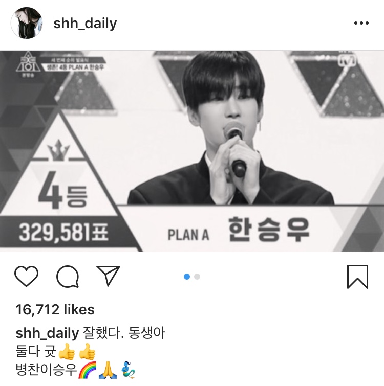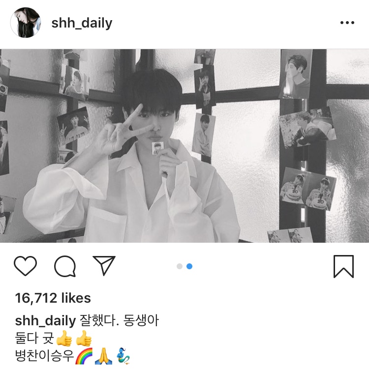 Giọng ca Secret đã thể hiện tình yêu dành cho những cậu em của mình kèm theo chú thích: “Làm tốt lắm, em trai à. Cả hai đều đã rất làm rồi. Byung Chanie, Seung Woo”.