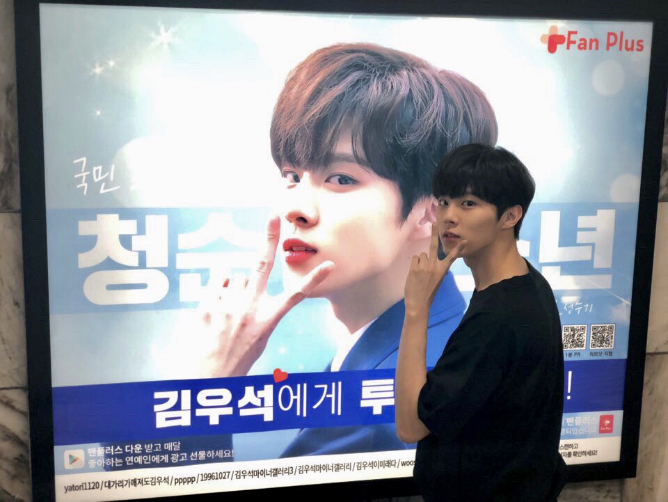 Kim Woo Seok đã đăng tải ảnh tạo dáng trước tấm ảnh quảng cáo trên tàu điện ngầm. Trong đó, có một bức ảnh anh ấy đáng yêu tạo dáng giống như tấm ảnh quảng cáo của mình và ghi chú phản hồi lại cho người hâm mộ để thể hiện tình yêu và sự hỗ trợ của họ.