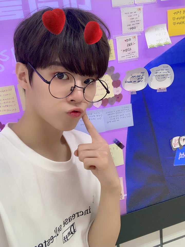“Xin chào! Mình là thực tập sinh của T.O.P Media - Kim Woo Seok đây ạ. Sự quyến rũ của mình là “sự quyến rũ bất ngờ/đảo ngược”. Khi mình đeo kính như thế này, mình có thể thể hiện một mặt dễ thương, và khi mình tháo kính ra ….. nó có giống nhau không…..? ㅎㅎ”.