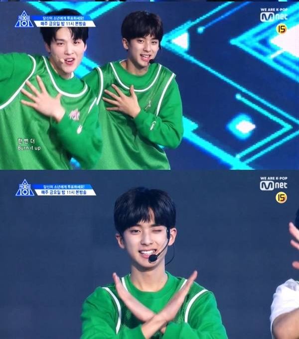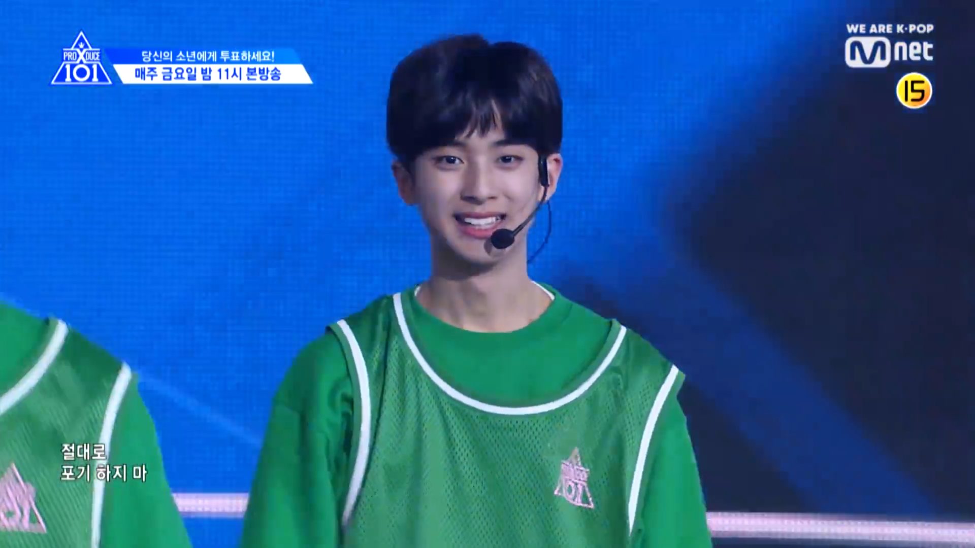 Trong khi đó, Kim Mingyu, mặc áo màu xanh lá của lớp D, liên tục nở nụ cười với máy quay. Thậm chí, Kim Min-gyu nháy mắt trước máy quay trong khi nhảy, làm tan vỡ trái tim của các nhà sản xuất quốc dân và tăng thêm lượng bình chọn cho mình.