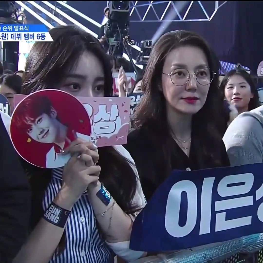 Mẹ của Kim Woo Seok (phải) và Kim Yo Han (trái) đứng cạnh nhau.