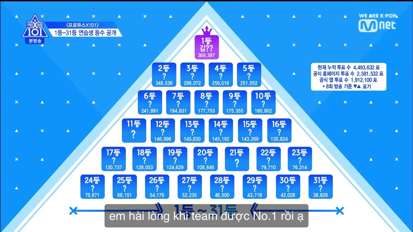 Với lợi thế lớn từ lượt bình chọn trong buổi biểu diễn này, bảng xếp hạng của 31 thực tập sinh chắc chắn sẽ có sự thay đổi đáng kể. Trước đó, Kim Woo Seok và Lee Jin Hyuk lần lượt đứng đầu, Kim Yo Han ở hạng 3. Ở cuối tập, nhà sản xuất phát bảng xếp hạng cho tập 11 và hạng nhất là một thực tập sinh họ Kim. Người này là Kim Yo Han hay Kim Woo Seok, để biết thêm chi tiết, mời các bạn đón xem tập tiếp theo vào thứ Sáu tuần sau trên Mnet.