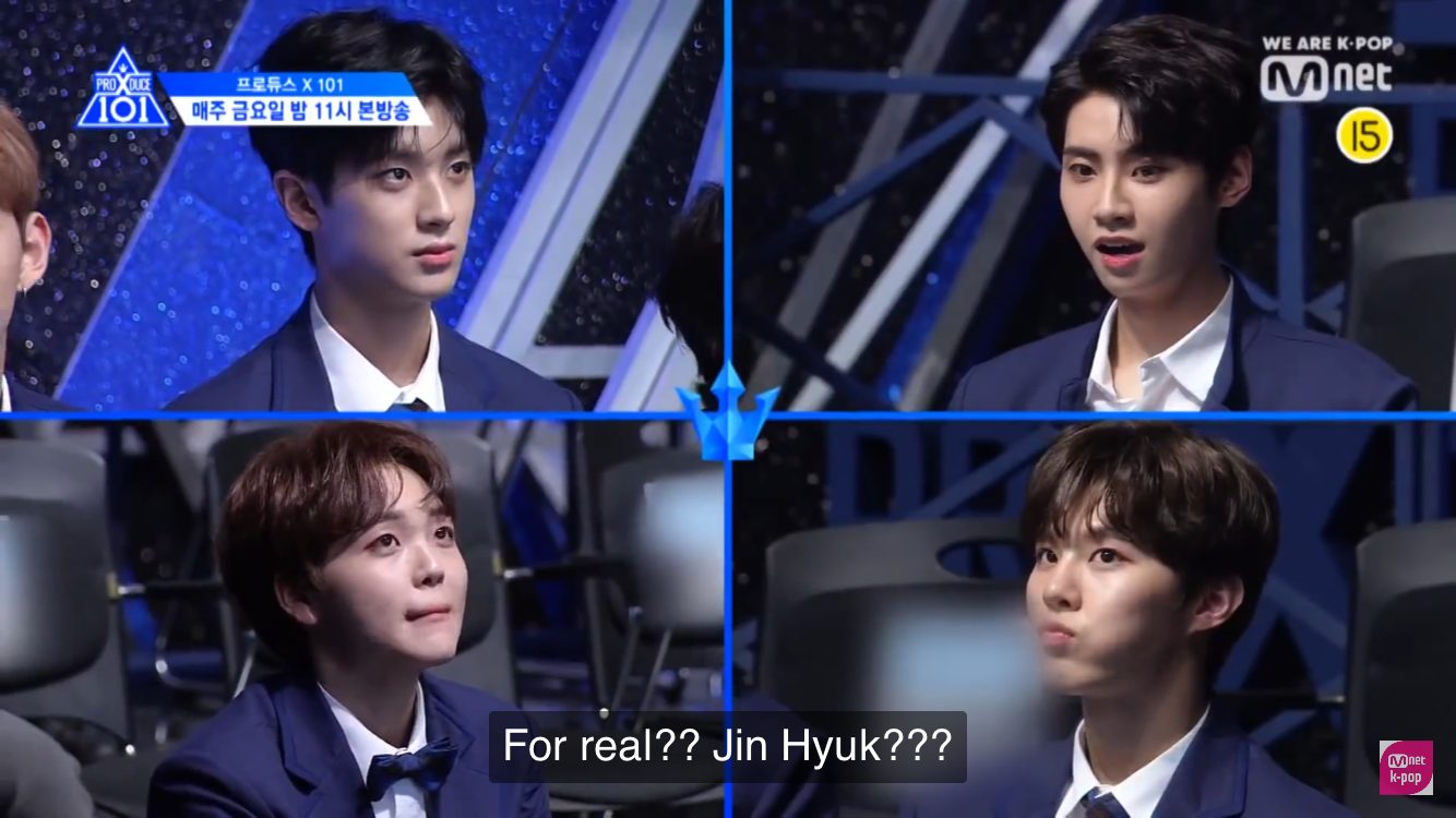 Trong đó, Lee Dong Wook giới thiệu: “Ứng cử viên tranh cử cho vị trí đầu tiên…trong top 4”. Màn hình chiếu 4 thực tập sinh xuất hiện là Kim Min Kyu, Song Hyeong Jun, Lee Jin Hyuk và Kim Woo Seok. Tuy nhiên, kết quả đáng kinh ngạc khi Kim Min Kyu không hề nằm trong top 4. Trên thực tế, cậu ấy bị giảm 7 hạng và đứng ở hạng 10. Đây là một vị trí vô cùng nguy hiểm cho đến thời điểm hiện tại.