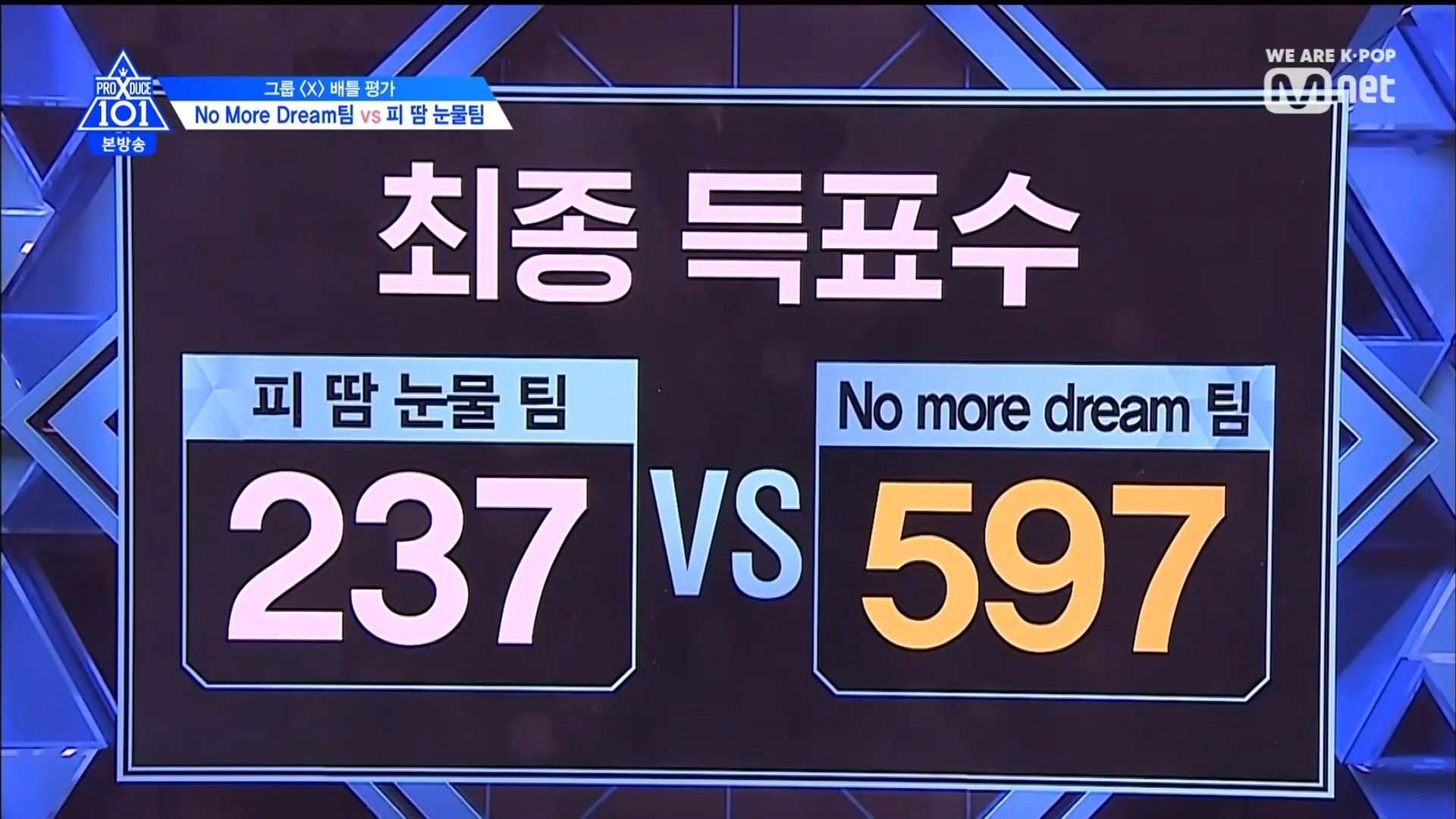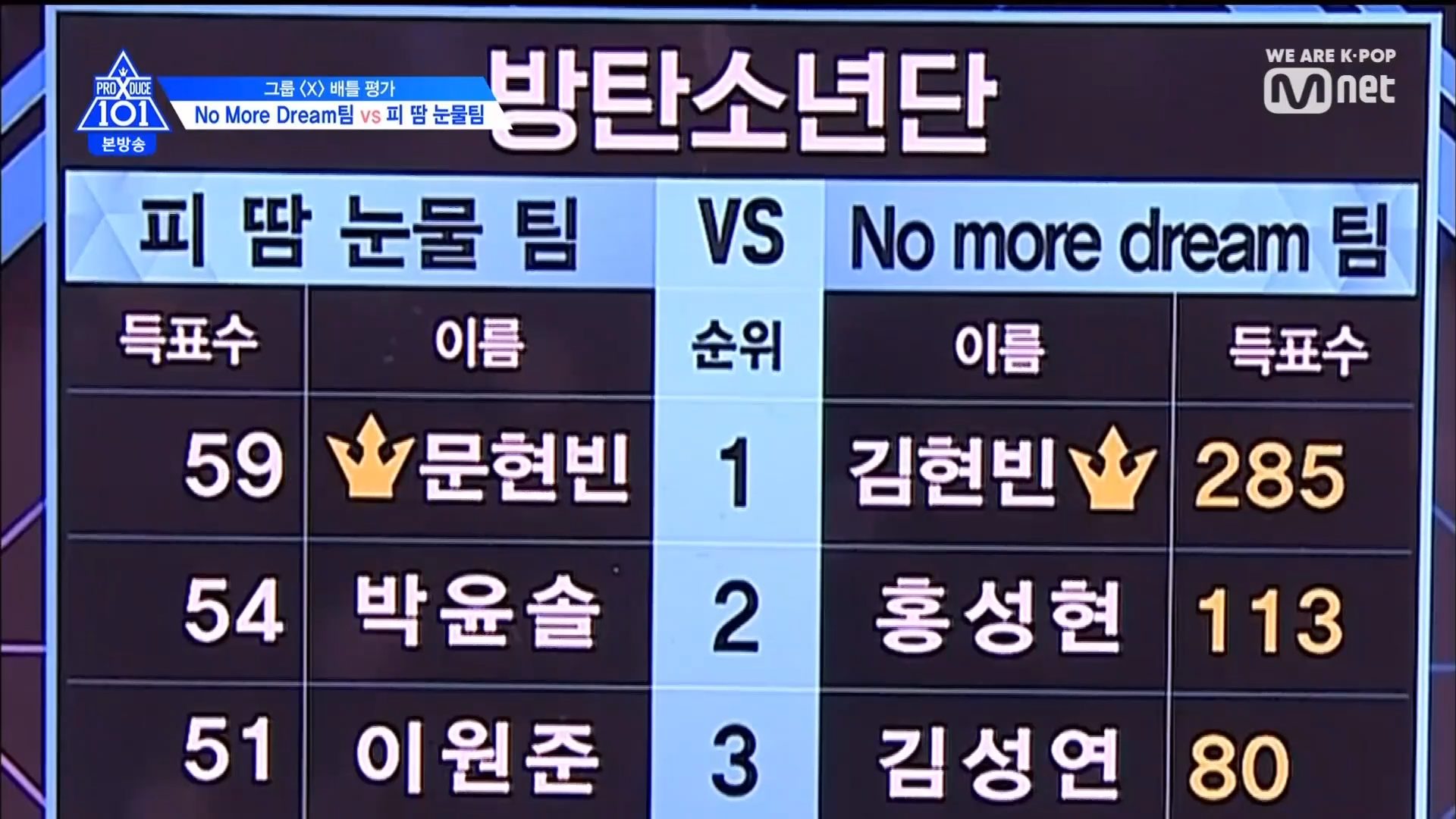 Team No More Dream chiến thắng áp đảo. Người có lượt vote cao nhất là center Kim Hyun Bin. Center team No More Dream Kim Hyun Bin giành chiến thắng trước center Moon Hyun Bin. Mỗi TV team win sẽ được cộng thêm 3000 vote.