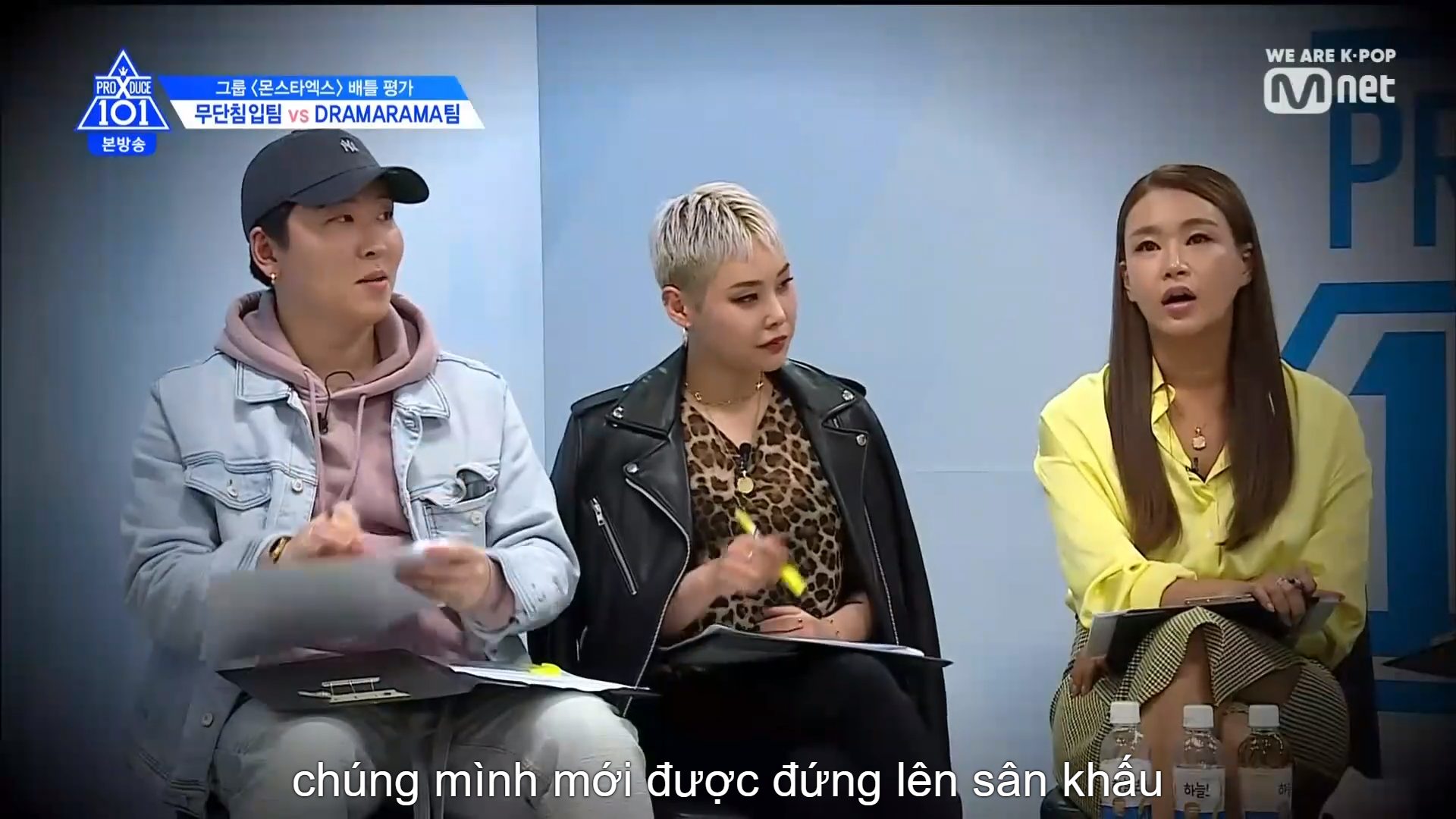 Dàn HLV cùng đại diện nhà sản xuất quốc dân Lee Dong Wook chuẩn bị đón xem các thực tập sinh trình diễn trong vòng đấu đầu tiên. Lần này còn có sự góp mặt của Jooheon - thành viên Monsta X và màn tái xuất của huấn luyện viên Bae Yoon Jung nổi tiếng hà khắc.
