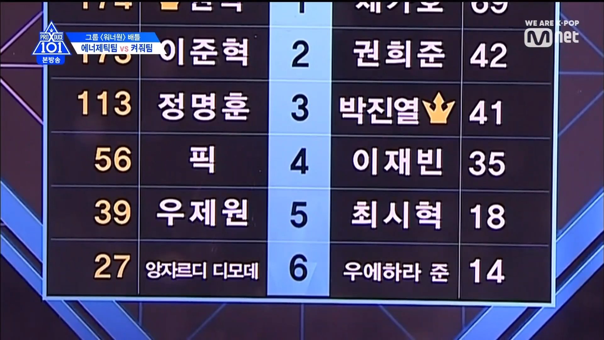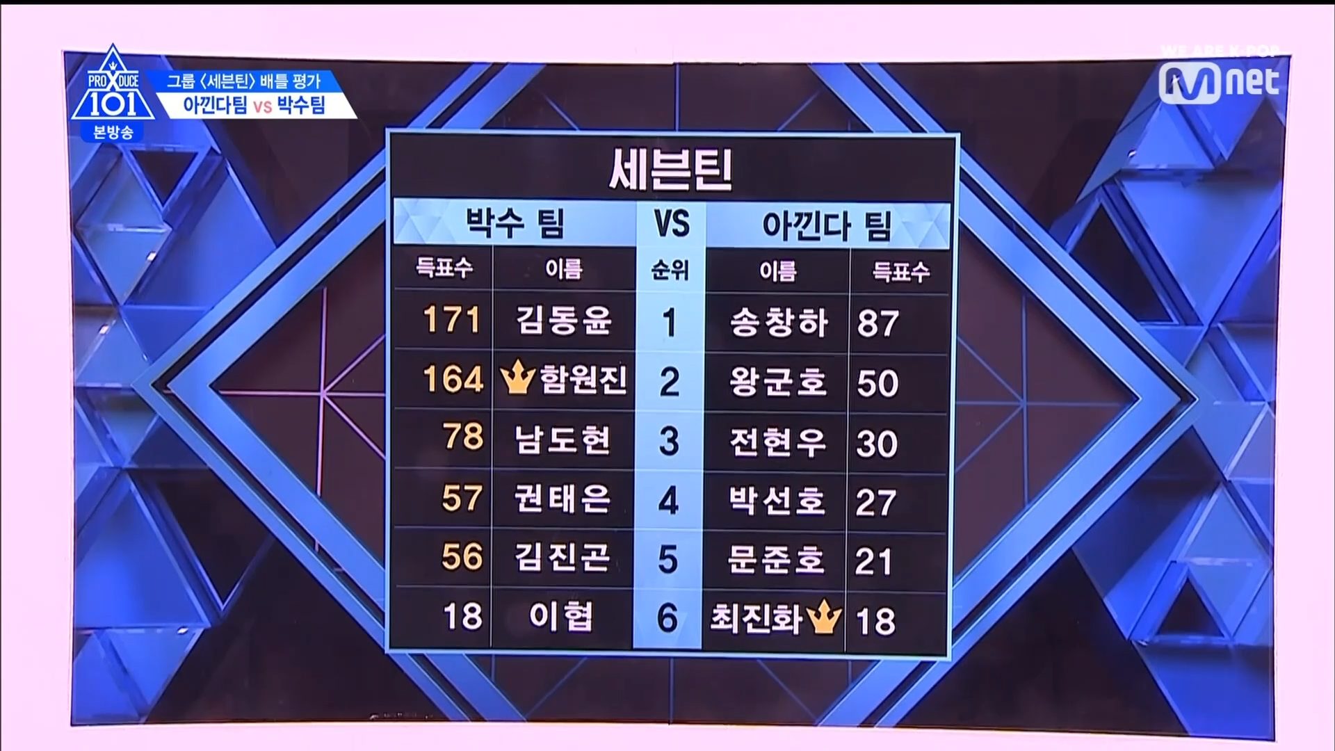 Những cái tên gây sốt khác như Kim Mingyu hay Song Yuvin chỉ dừng lại ở top 30 do phần trình diễn nhóm không giành được nhiều phiếu so với đối thủ.