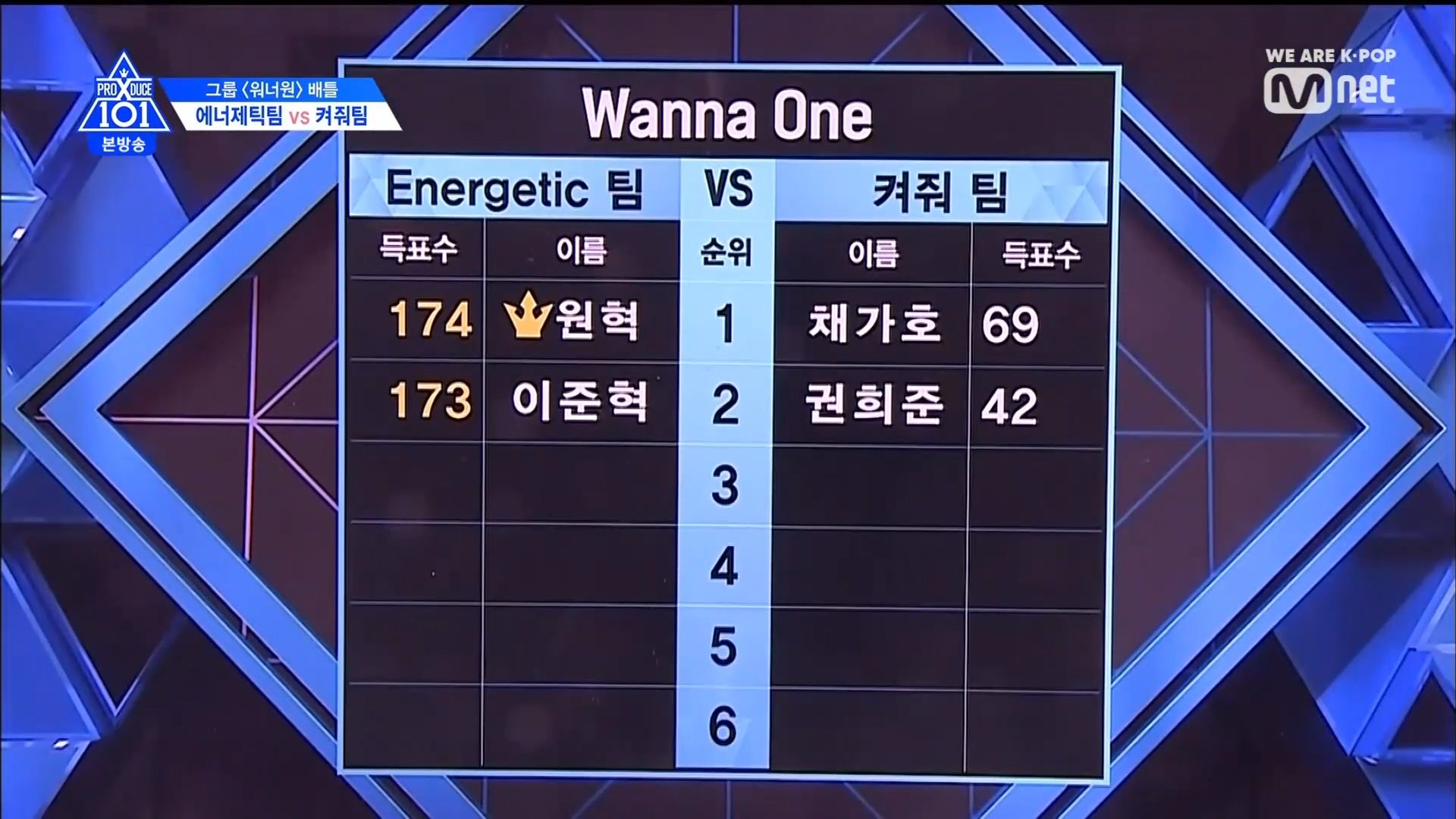 Center của Energetic - Won Hyuk dành No. 1. Team Energetic giành chiến thắng đầy thuyết phục. 174 phiếu vô cùng áp đảo với hạng 1 của Light.