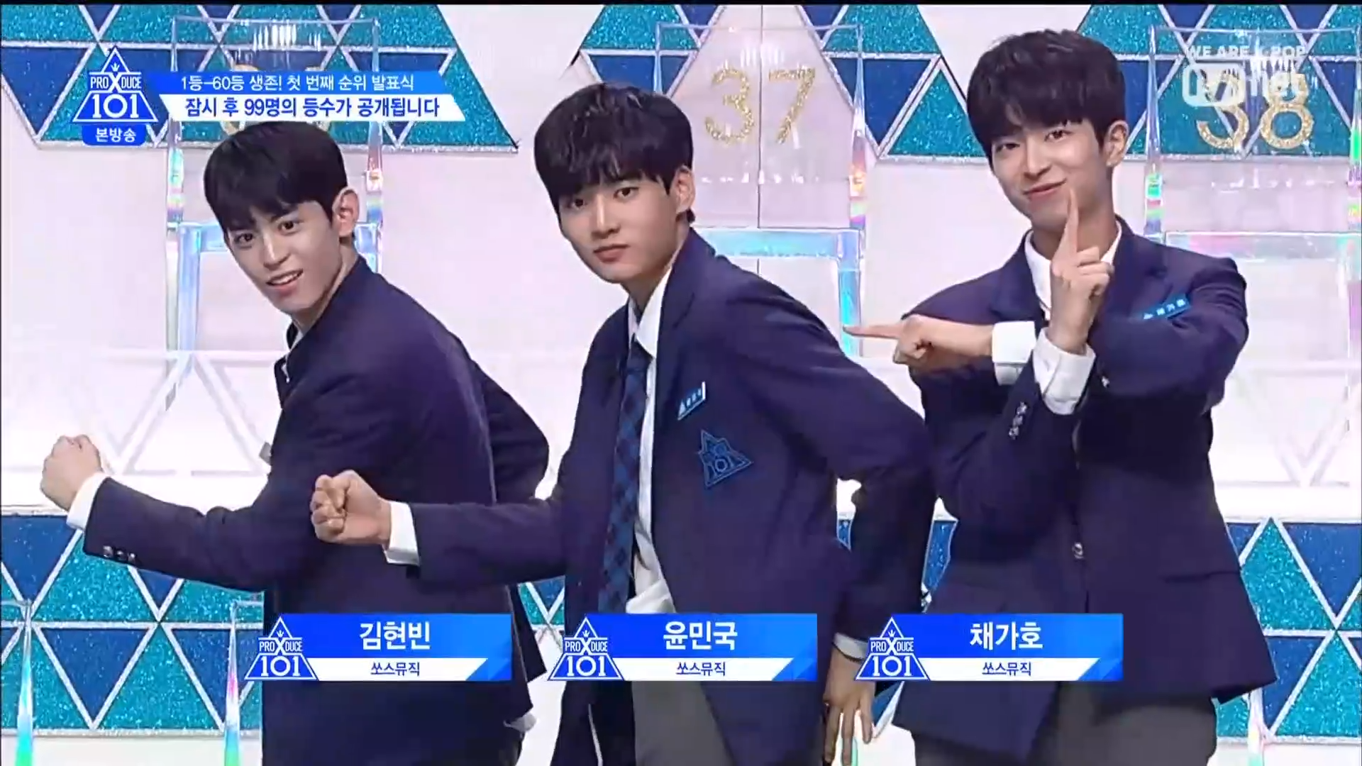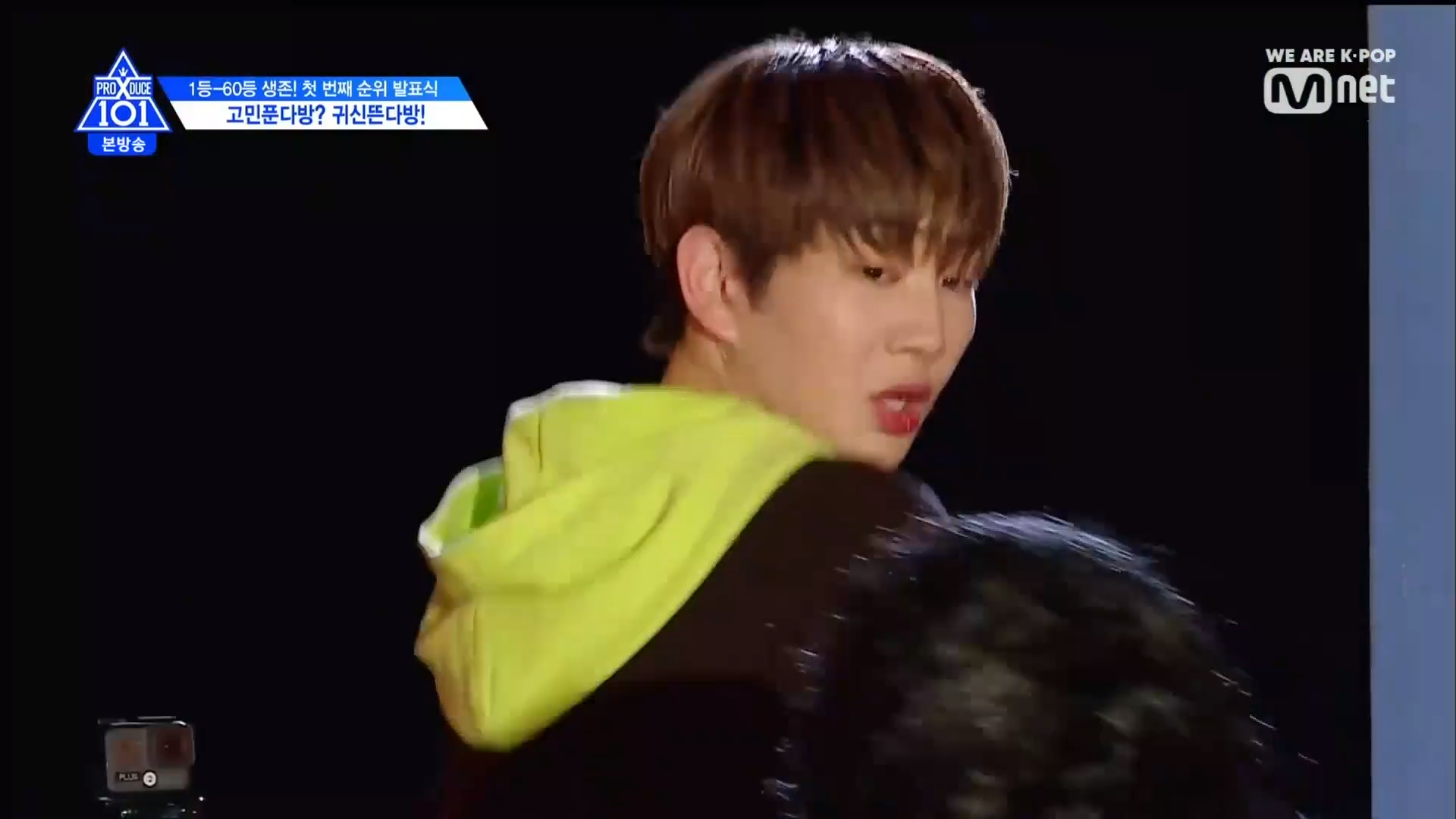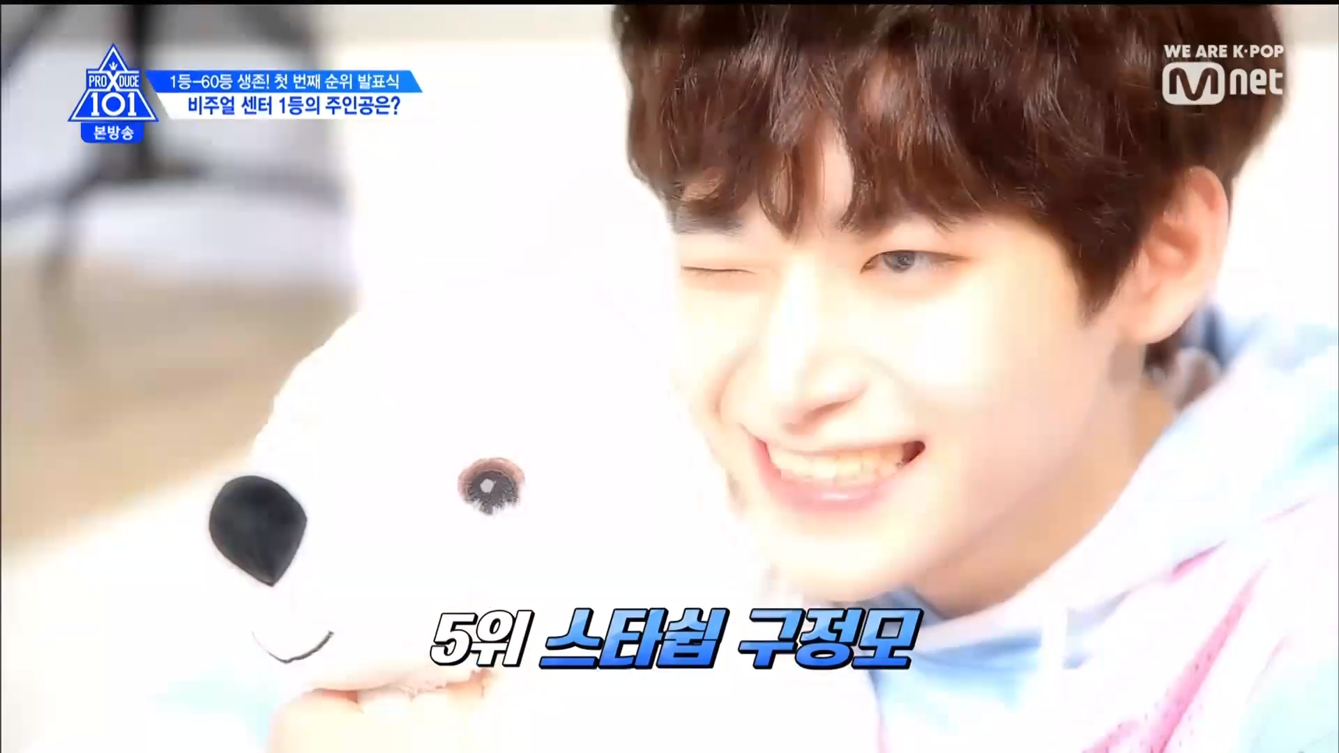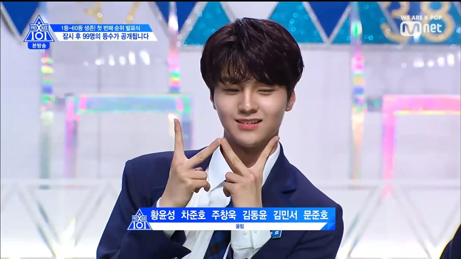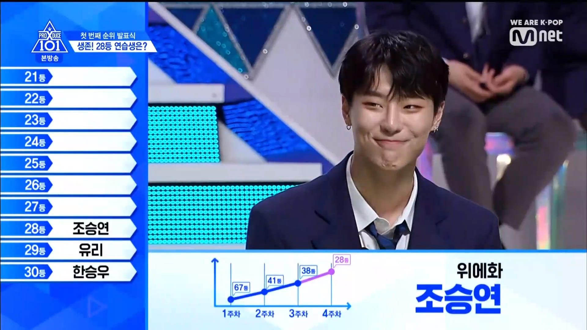Thời khắc hồi hộp nhất chính thức bắt đầu. Hạng 59 sẽ được công bố đầu tiên. Kim Seong Yeon đã được gọi tên, là TTS đầu tiên được an toàn đi tiếp. WonHyuk hạng 57. Giữ nguyên hạng so với tuần trước. Trước đây TTS này từng xếp hạng 99. Mahiro từ YG hạng 56. Woo Je Won hạng 55 đến từ Around Us. YG Wang Kunho hạng 54. Kwon He Jun TTS lớp X hạng 53. Em trai Nam Tae Hyun - Nam Dong Hyun hạng 52.