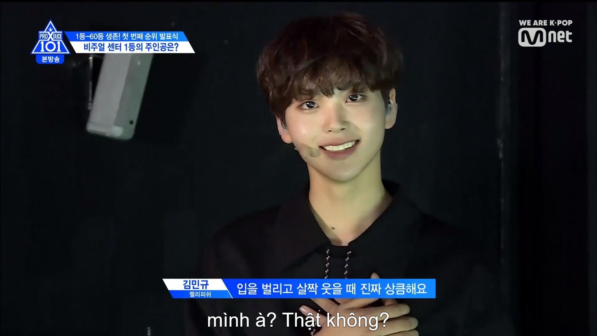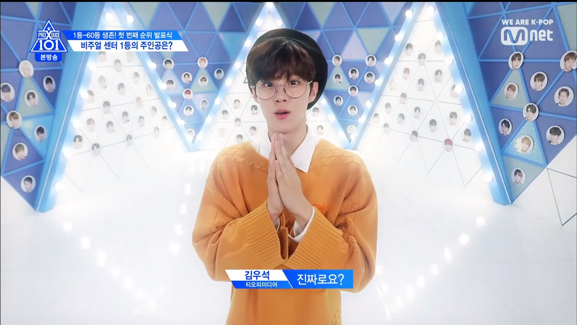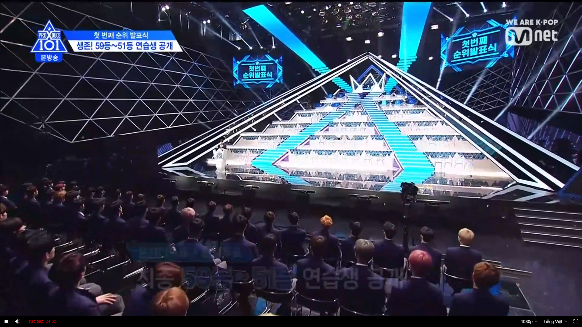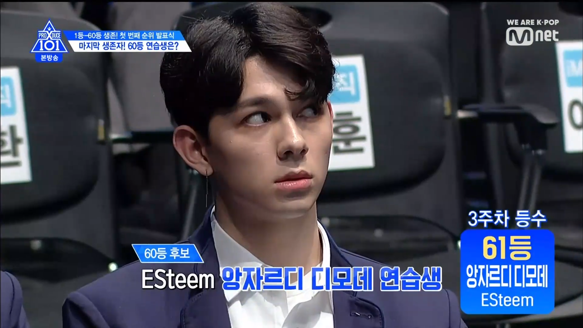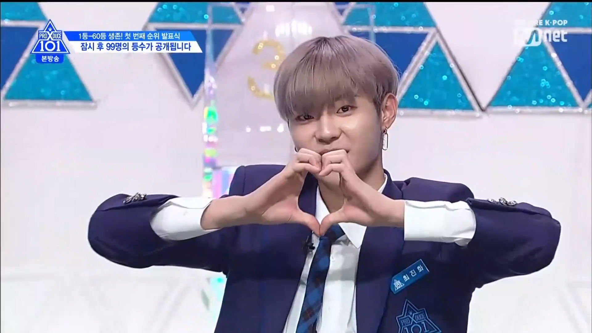 Thời khắc hồi hộp nhất chính thức bắt đầu. Hạng 59 sẽ được công bố đầu tiên. Kim Seong Yeon đã được gọi tên, là TTS đầu tiên được an toàn đi tiếp. WonHyuk hạng 57. Giữ nguyên hạng so với tuần trước. Trước đây TTS này từng xếp hạng 99. Mahiro từ YG hạng 56. Woo Je Won hạng 55 đến từ Around Us. YG Wang Kunho hạng 54. Kwon He Jun TTS lớp X hạng 53. Em trai Nam Tae Hyun - Nam Dong Hyun hạng 52.