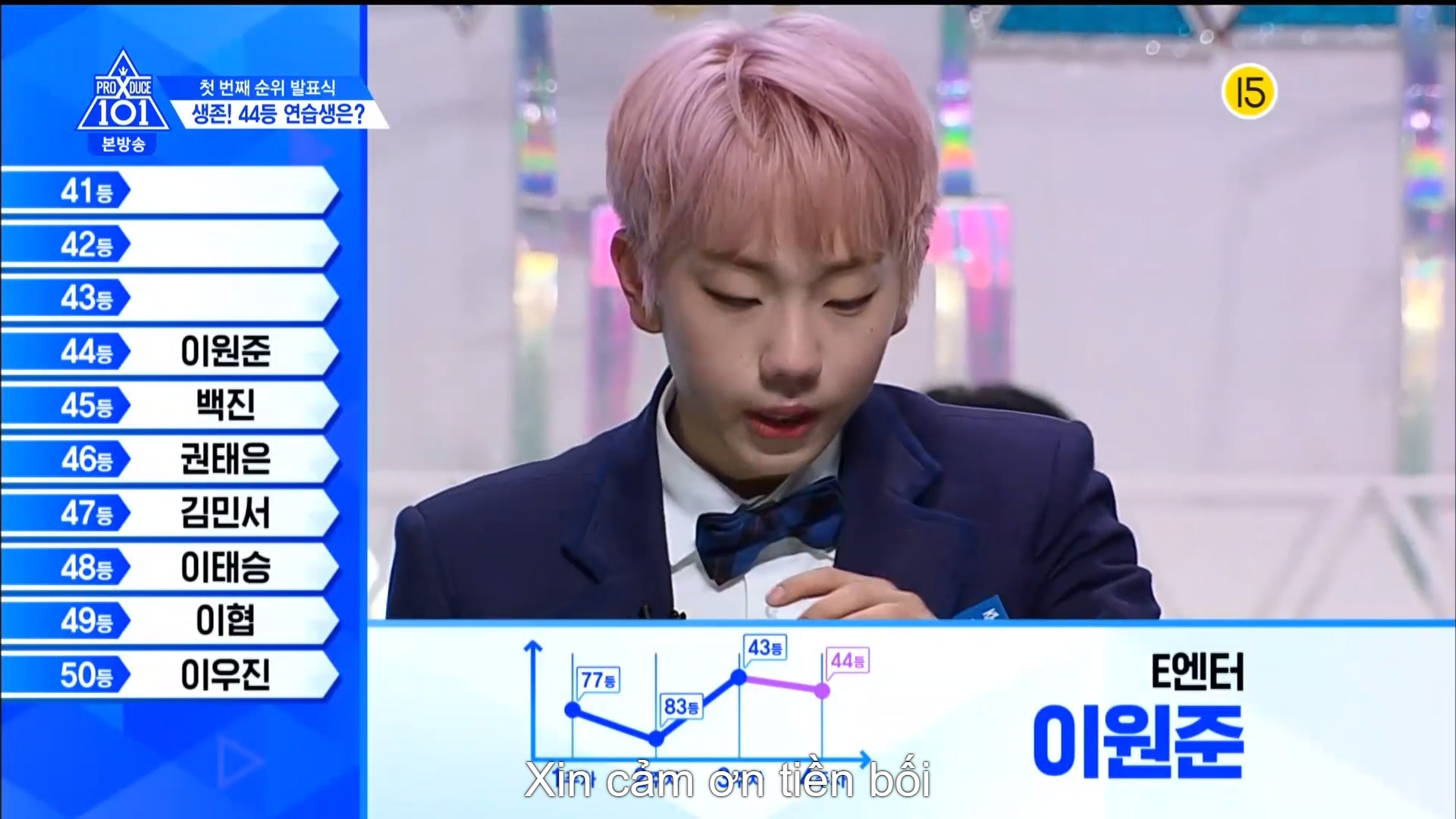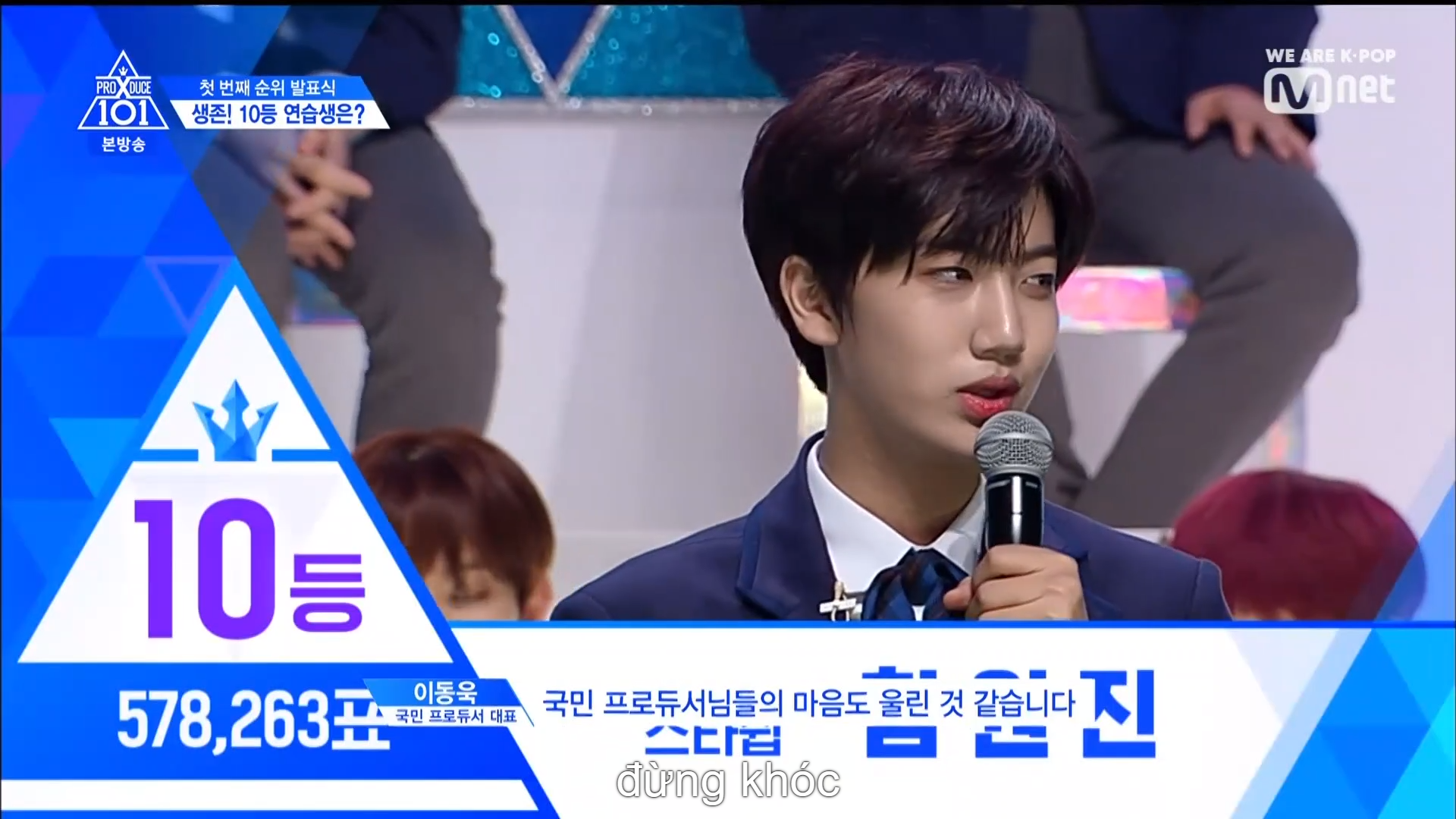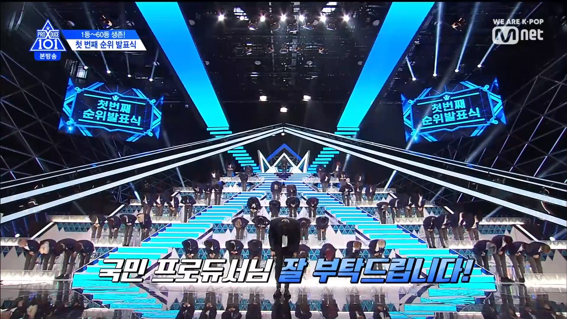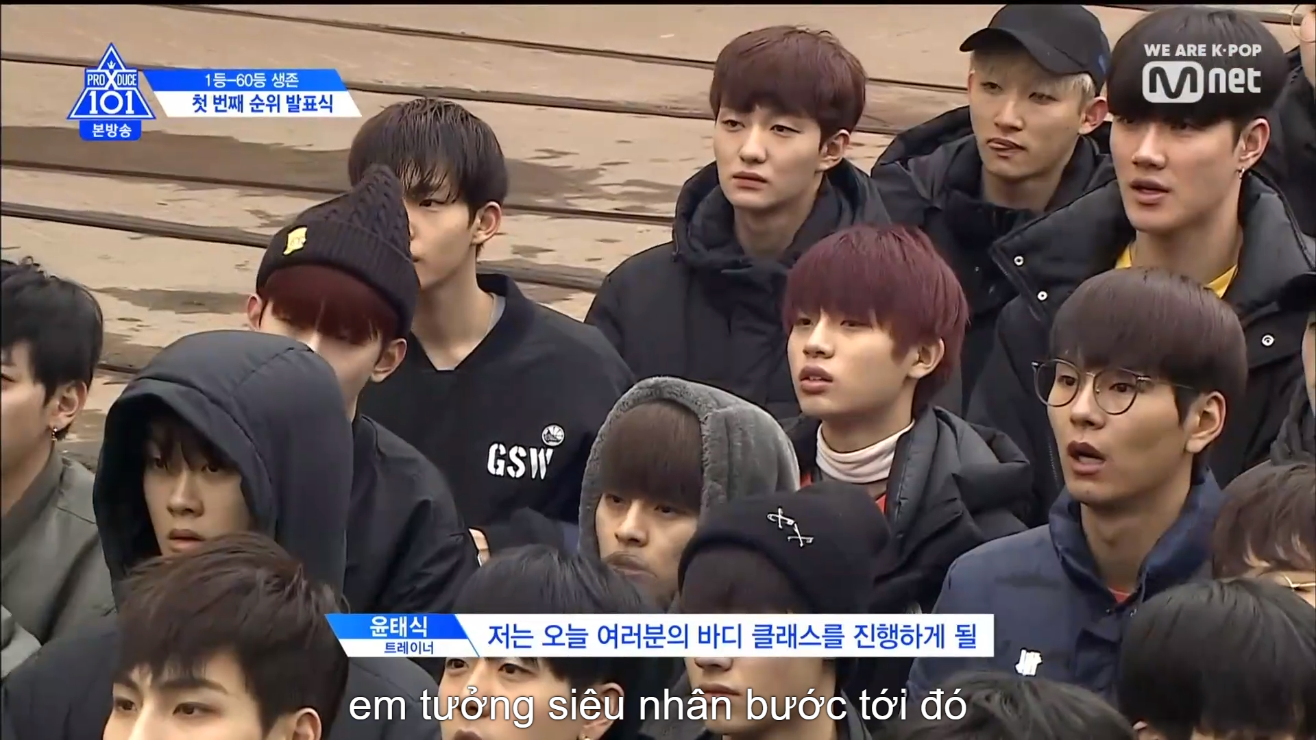 Top 60 cuối chào và gửi lời cảm ơn đến các nhà sản xuất quốc dân. Nhà đại diện Lee Dong Wook đã có lời động viên tới những TTS bị loại.