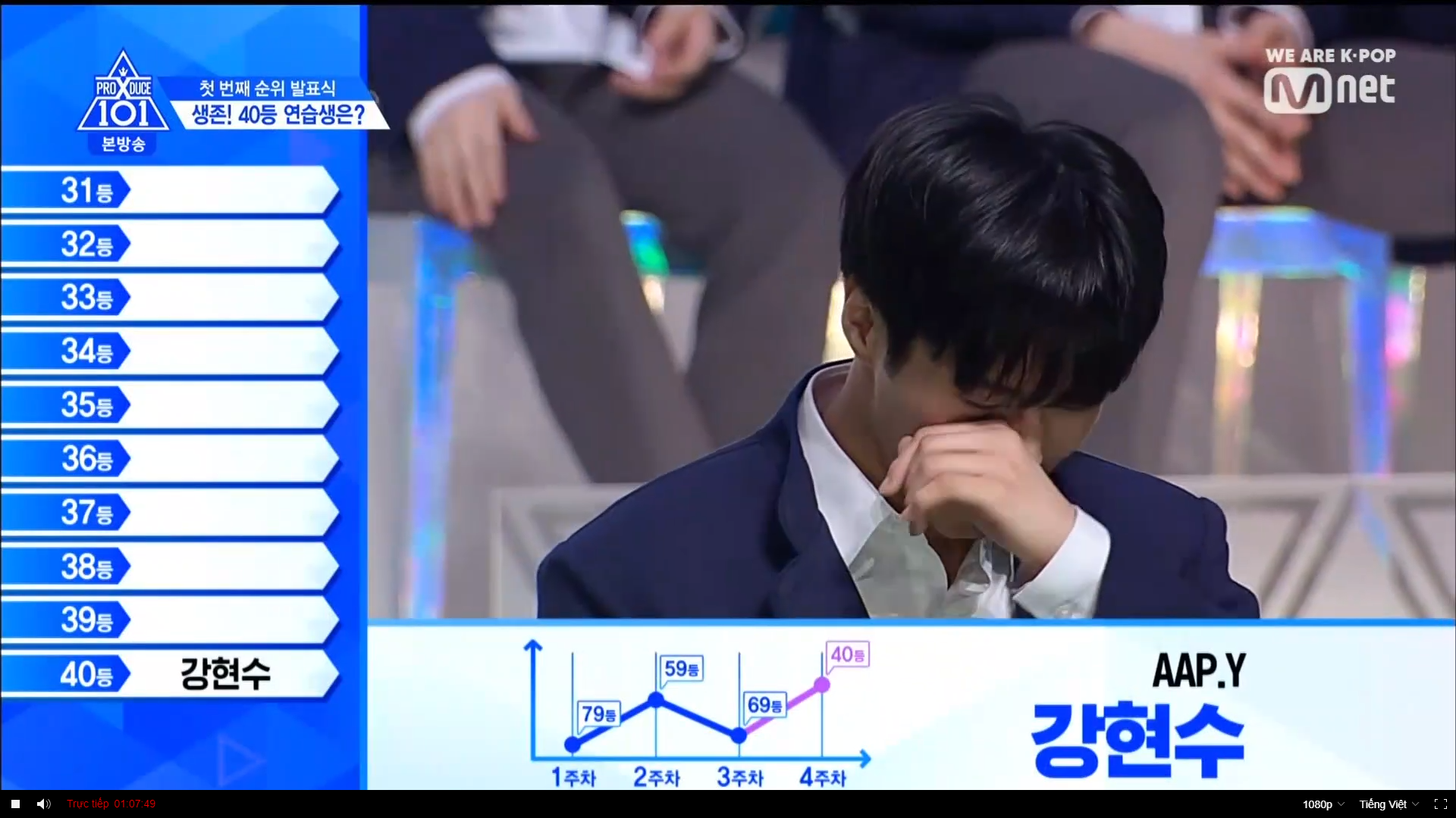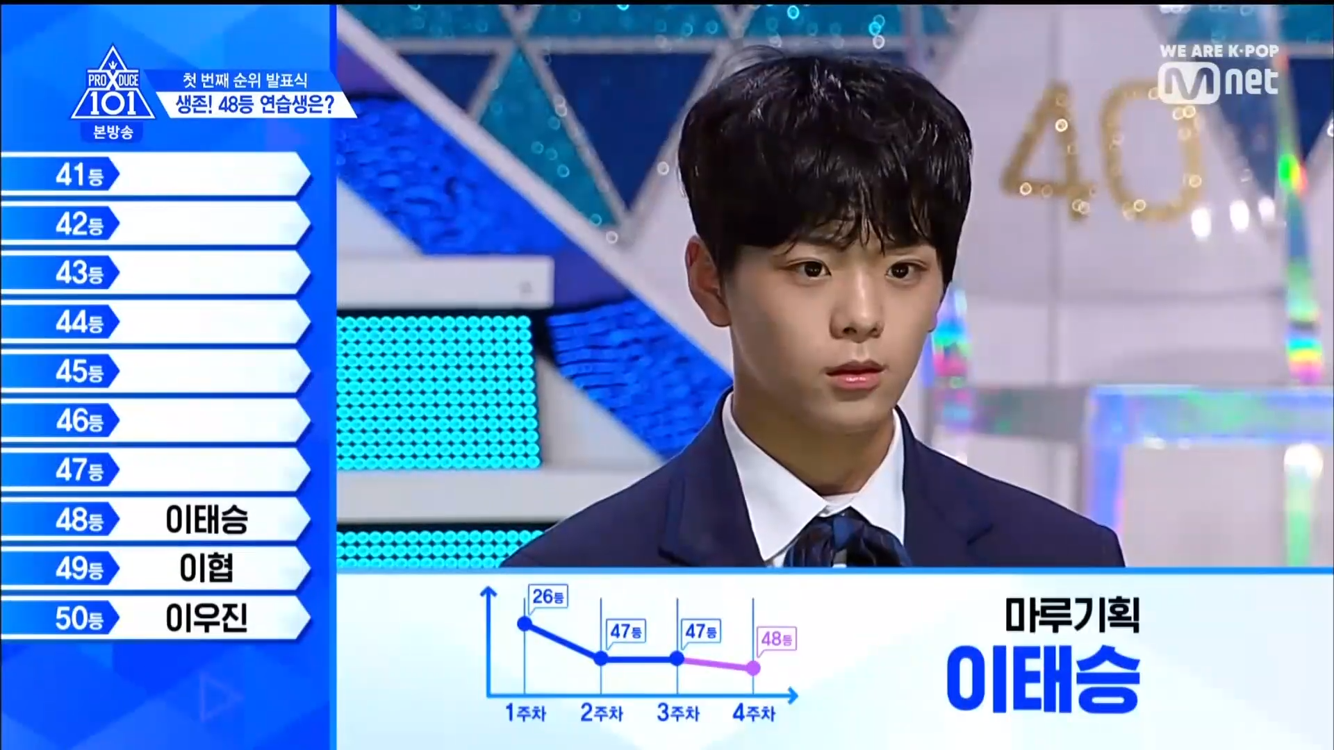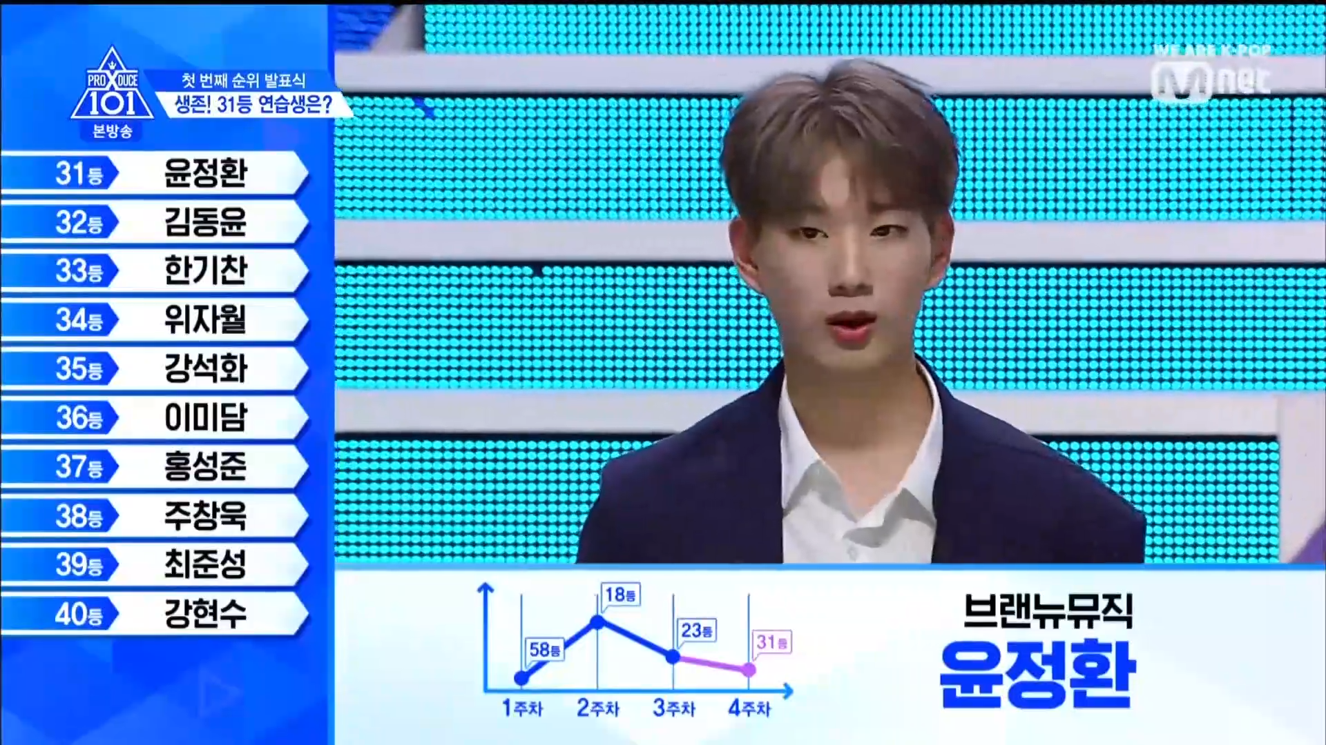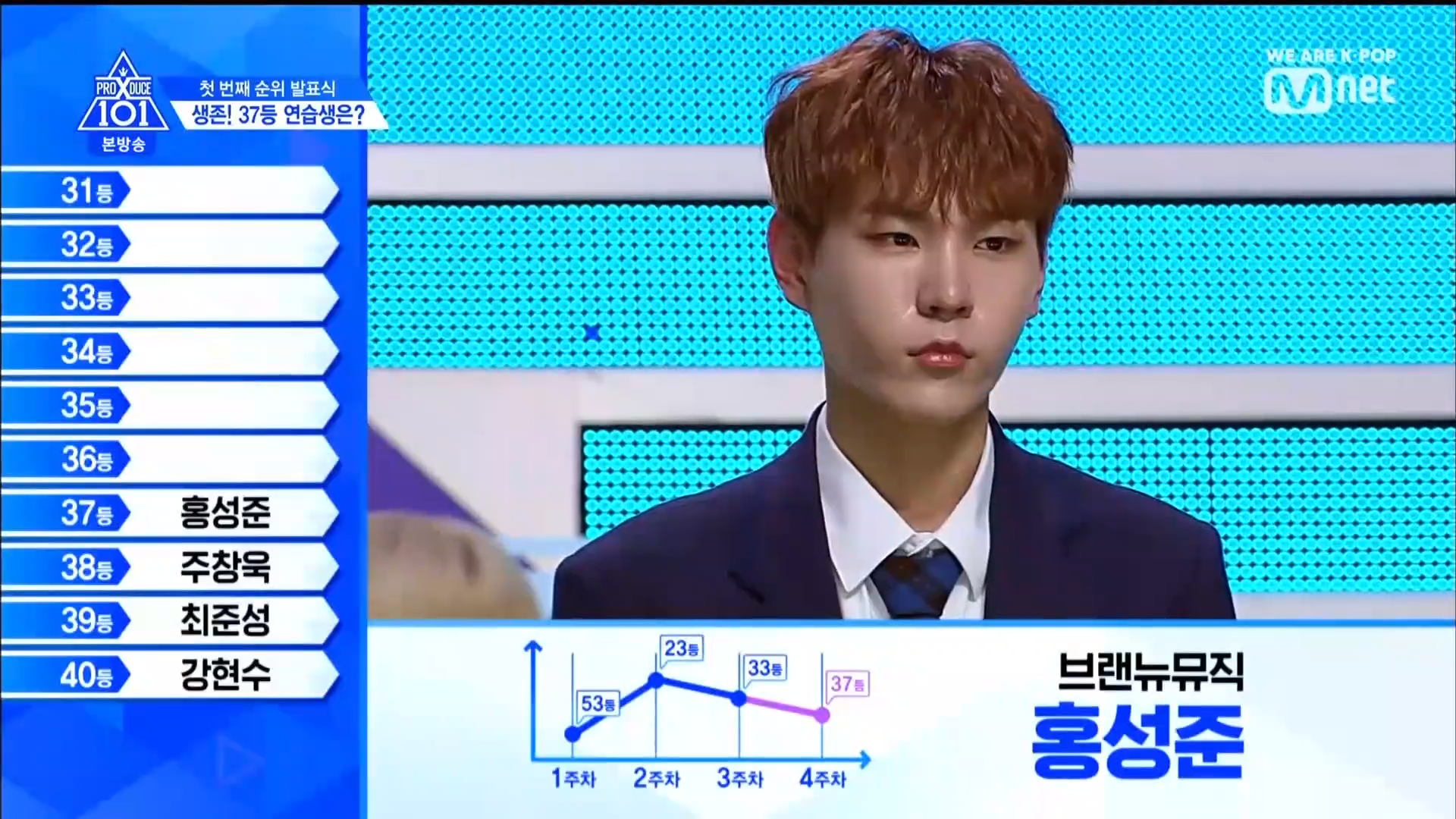 Quay trở lại màn xếp hạng từ hạng 40. Hạng 40 thuộc về HyunSoo - TTS lớp A. Đây cũng là TTS có bố đã tự cầm banner đi quảng bá cho con mình ở đường phố thời gian qua. Hạng 39 thuộc về Choi Jun Seong. Anh chàng đã bật khóc khi nghe thấy tên mình. Hạng 38 thuộc về TTS Choi Chang Wook. Hạng 37 là TTS SeongJun đến từ Brand New Music. Hạng 36 là TTS từ lớp X Lee Midam. Hạng 35 thuộc về Kang Seok Ha. Hạng 34 thuộc về TTS nước ngoài Zi Yue. Hạng 33 thuộc về Han Ki Chan.