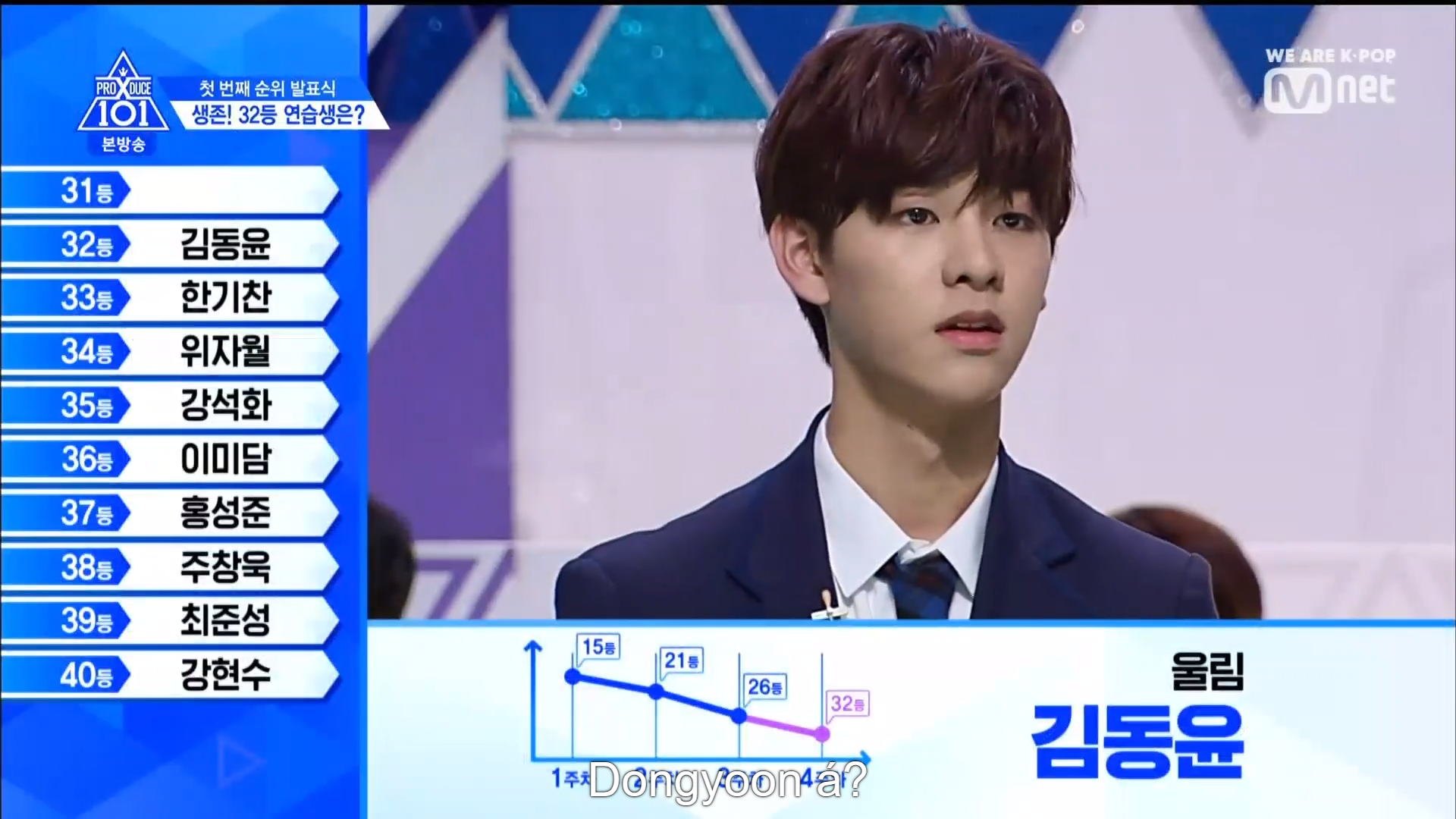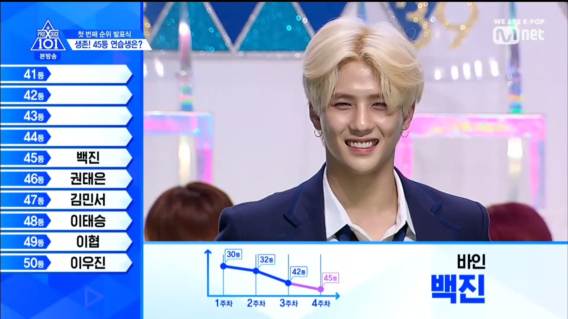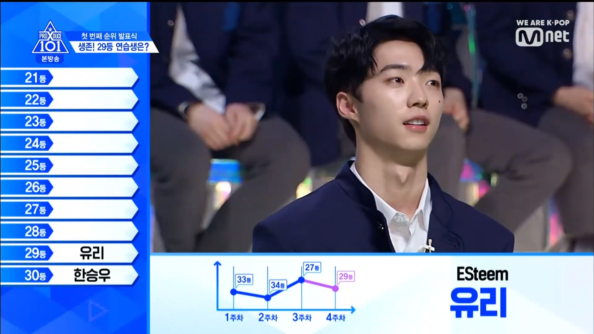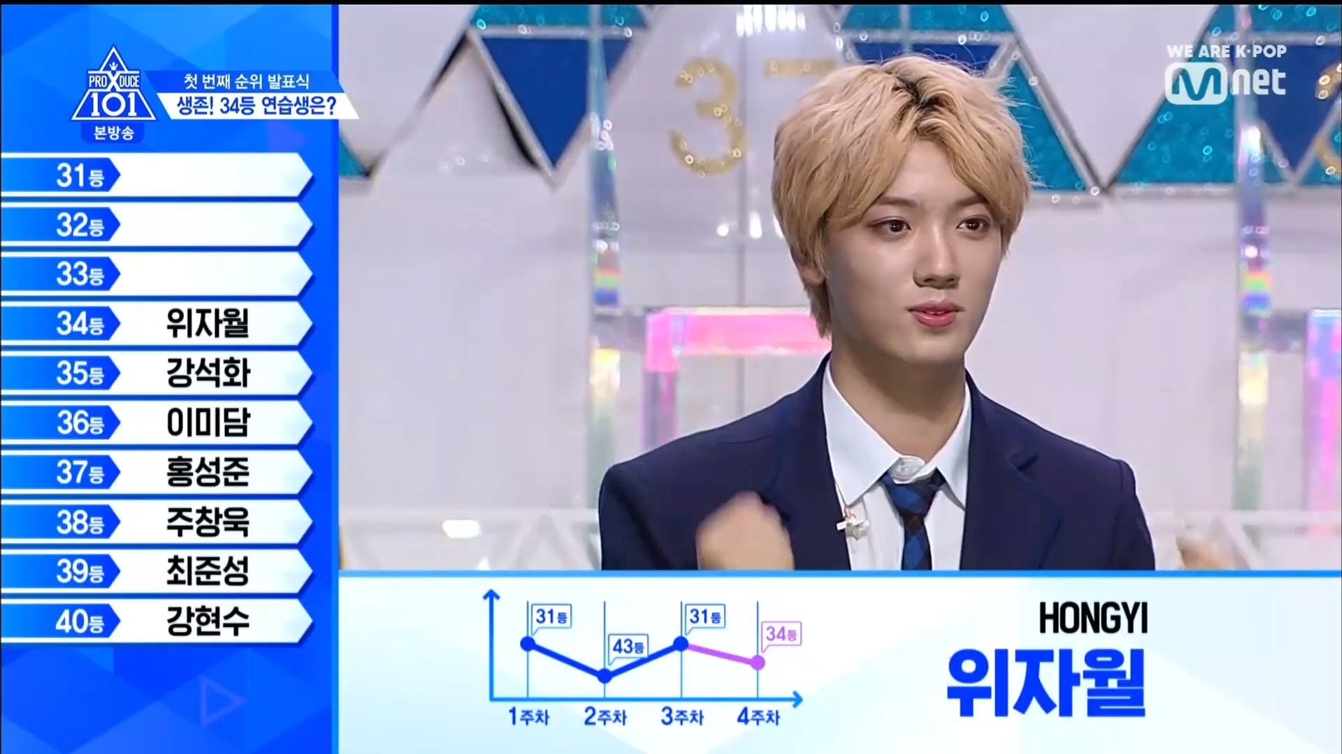 Quay trở lại màn xếp hạng từ hạng 40. Hạng 40 thuộc về HyunSoo - TTS lớp A. Đây cũng là TTS có bố đã tự cầm banner đi quảng bá cho con mình ở đường phố thời gian qua. Hạng 39 thuộc về Choi Jun Seong. Anh chàng đã bật khóc khi nghe thấy tên mình. Hạng 38 thuộc về TTS Choi Chang Wook. Hạng 37 là TTS SeongJun đến từ Brand New Music. Hạng 36 là TTS từ lớp X Lee Midam. Hạng 35 thuộc về Kang Seok Ha. Hạng 34 thuộc về TTS nước ngoài Zi Yue. Hạng 33 thuộc về Han Ki Chan.