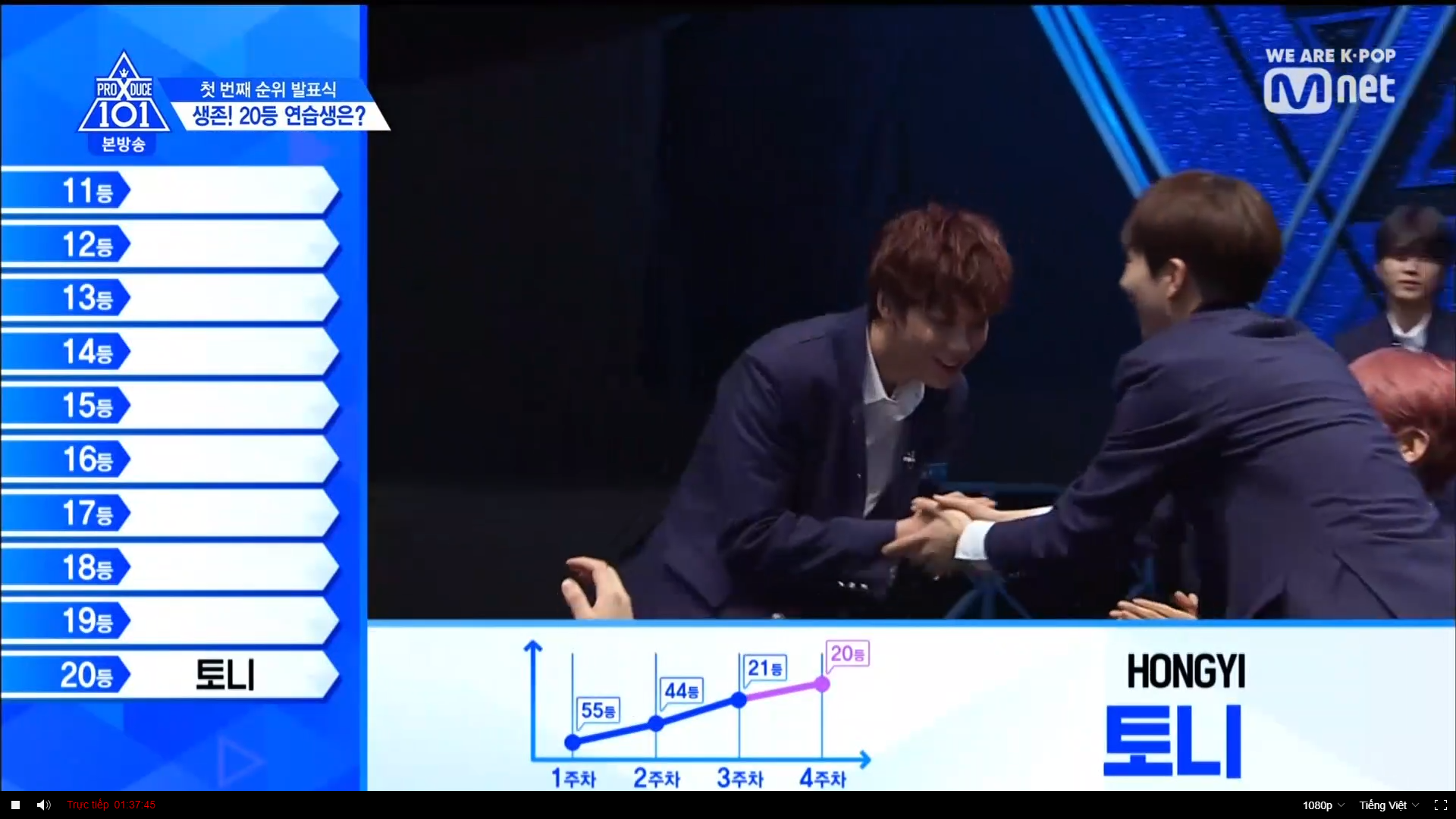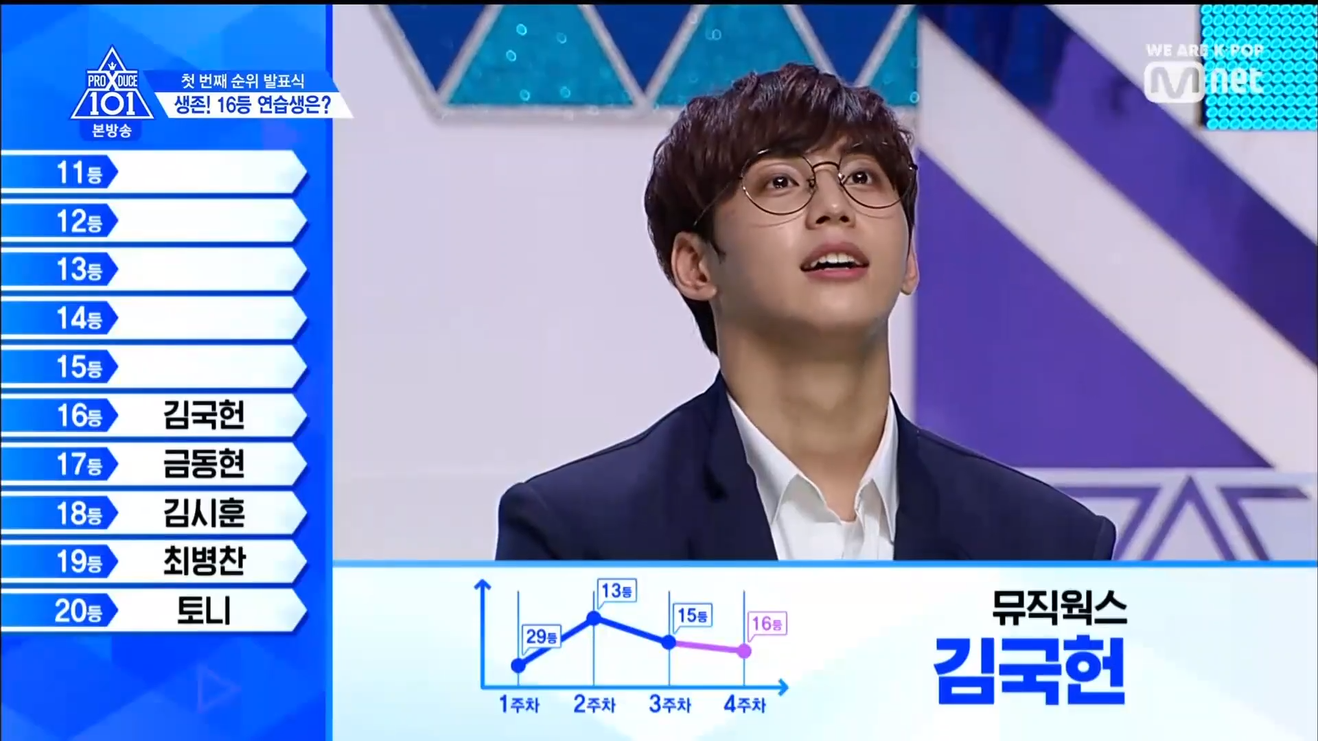 Biểu diễn ca khúc Mama của EXO, mỹ nam Tony đến từ Hongyi đã xuất sắc giành hạng 20. Hạng 19 thuộc về Plan A - Choi Byung Chan. Hạng 18 là TTS có màn thể hiện ấn tượng ca khúc Love Shot của EXO với 359k vote - Kim Shi Hoon đến từ Brand New Music. Hạng 17 thuộc về TTS có sức quyến rũ mạnh mẽ với 369k vote - C9 Geum Dong Hyung. Hạng 16 thuộc về Music Works - Kim Geok Heon. Anh chàng đa tài được các HLV vô cùng kì vọng. Hạng 15 là TTS cướp mất trái tim của các nhà sản xuất với 397k vote - Woolim Hwang Yoon Sung.