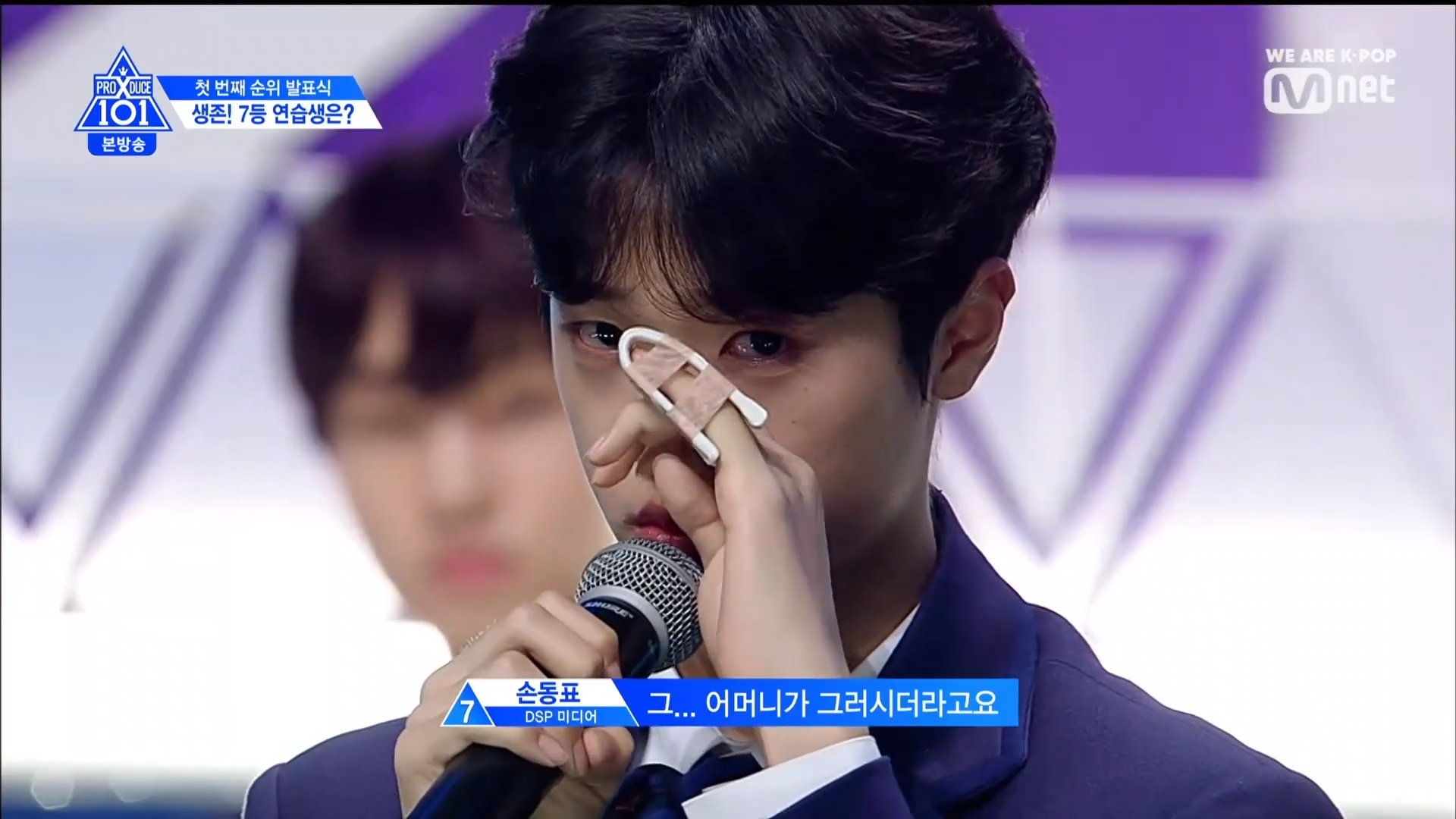 Hạng 7 với 710k vote thuộc về center Son Dong Pyo. Dong Pyo rơi nước mắt khi nhắc về mẹ.