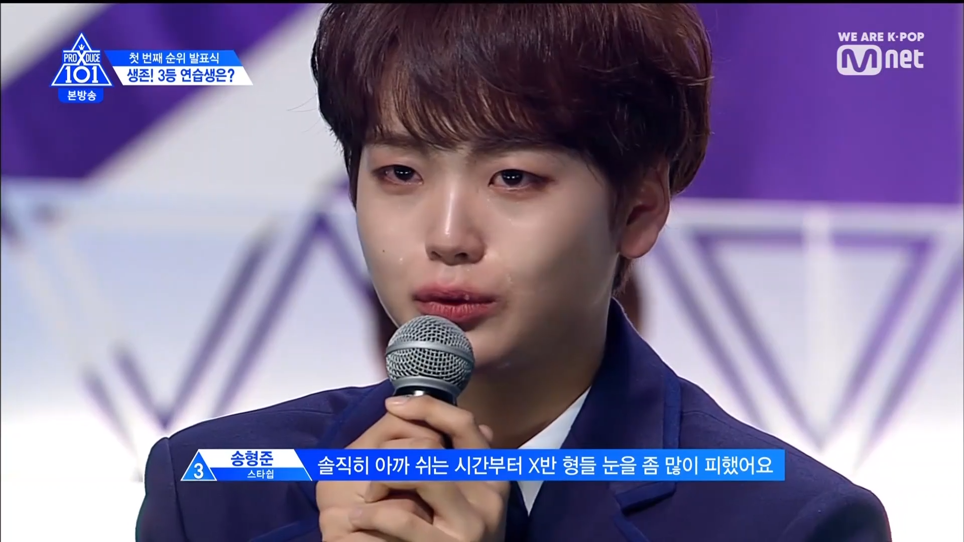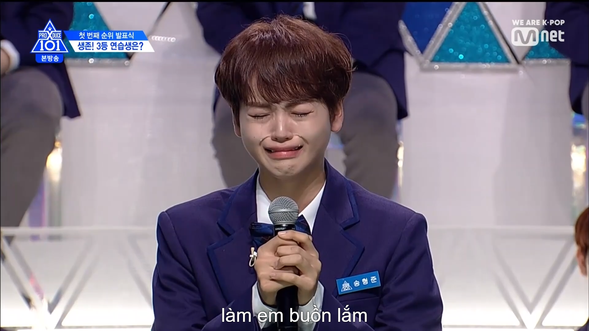 Cậu bé đã bật khóc vô cùng đáng yêu khi bày tỏ nỗi buồn vì rời xa các anh lớp X. Giọt nước mắt của Hyung Jun đã khiến mọi người bật cười trước sự dễ thương của em bé.